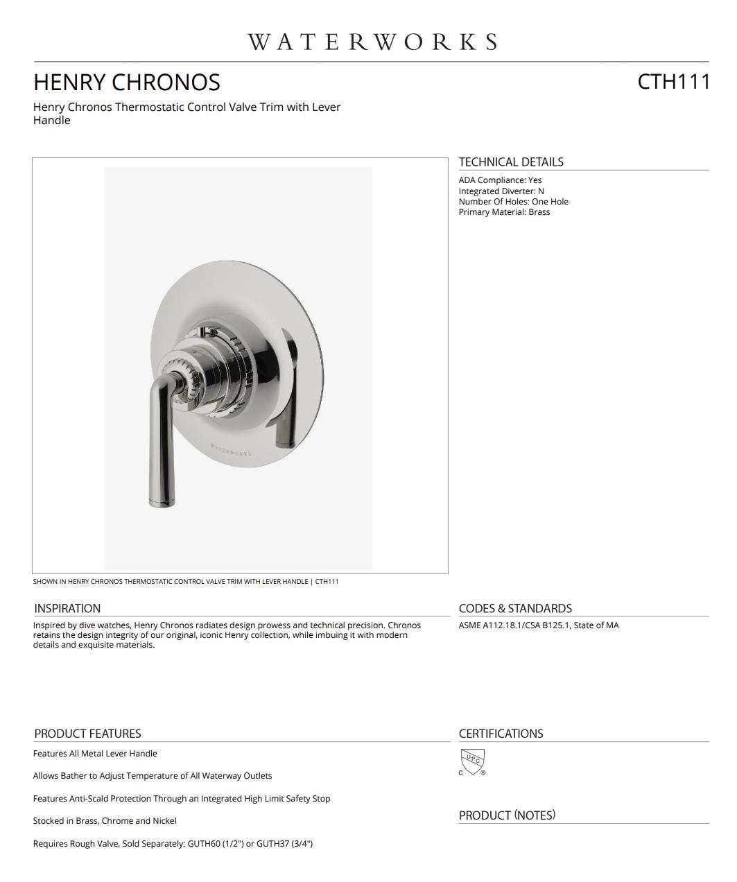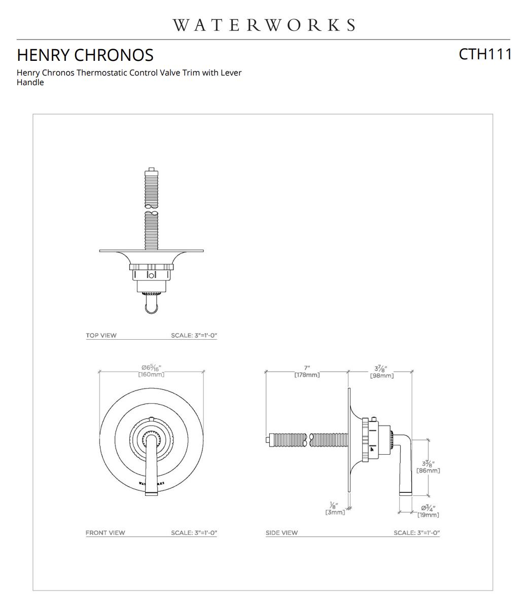 CTH111 HENRY CHRONOS THERMOSTATIC CONTROL VALVE TRIM WITH LEVER HANDLE IN BURNISHED NICKEL