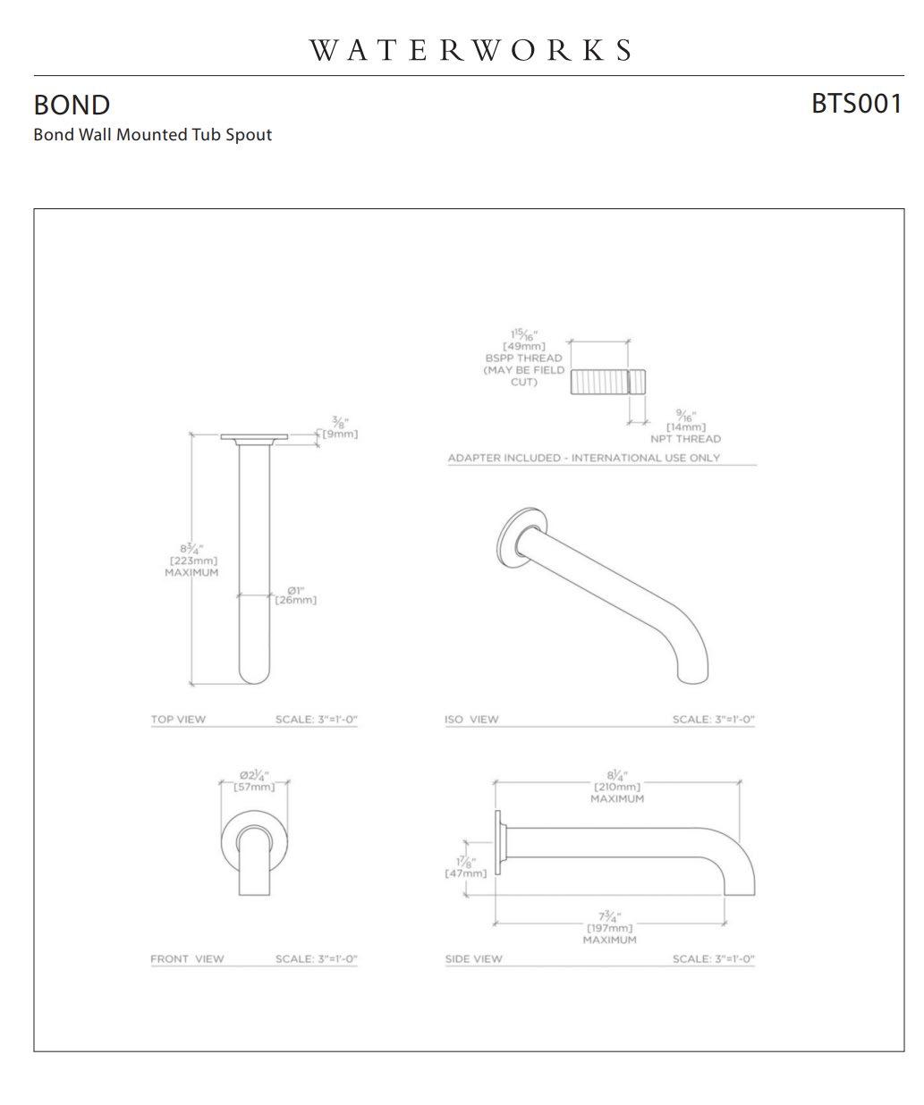 BOND WALL MOUNTED TUB SPOUT IN BURNISHED NICKEL