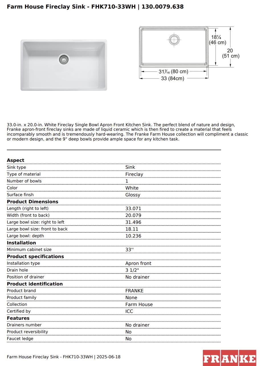 23-1/2" X 18-1/4" X 7-1/2", SINGLE BOWL