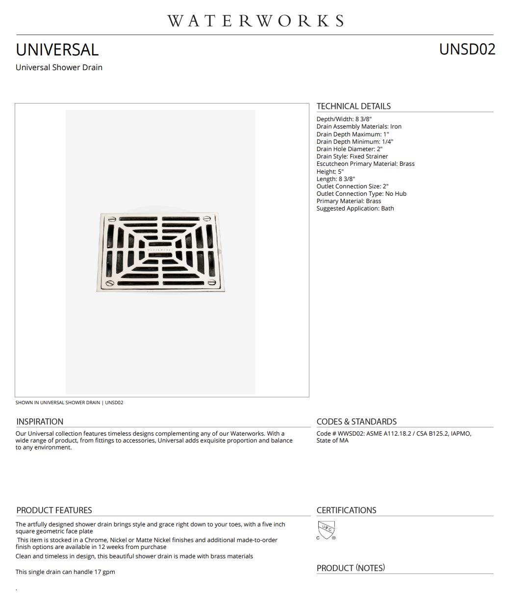 UNIVERSAL SHOWER DRAIN IN NICKEL