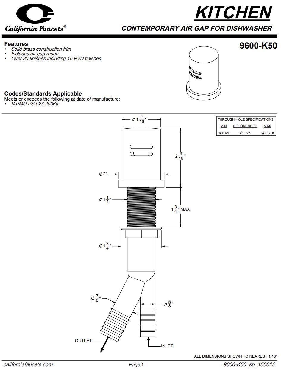 COMPLETE AIR GAP FOR DISHWASHER 9600-K50-BNU
