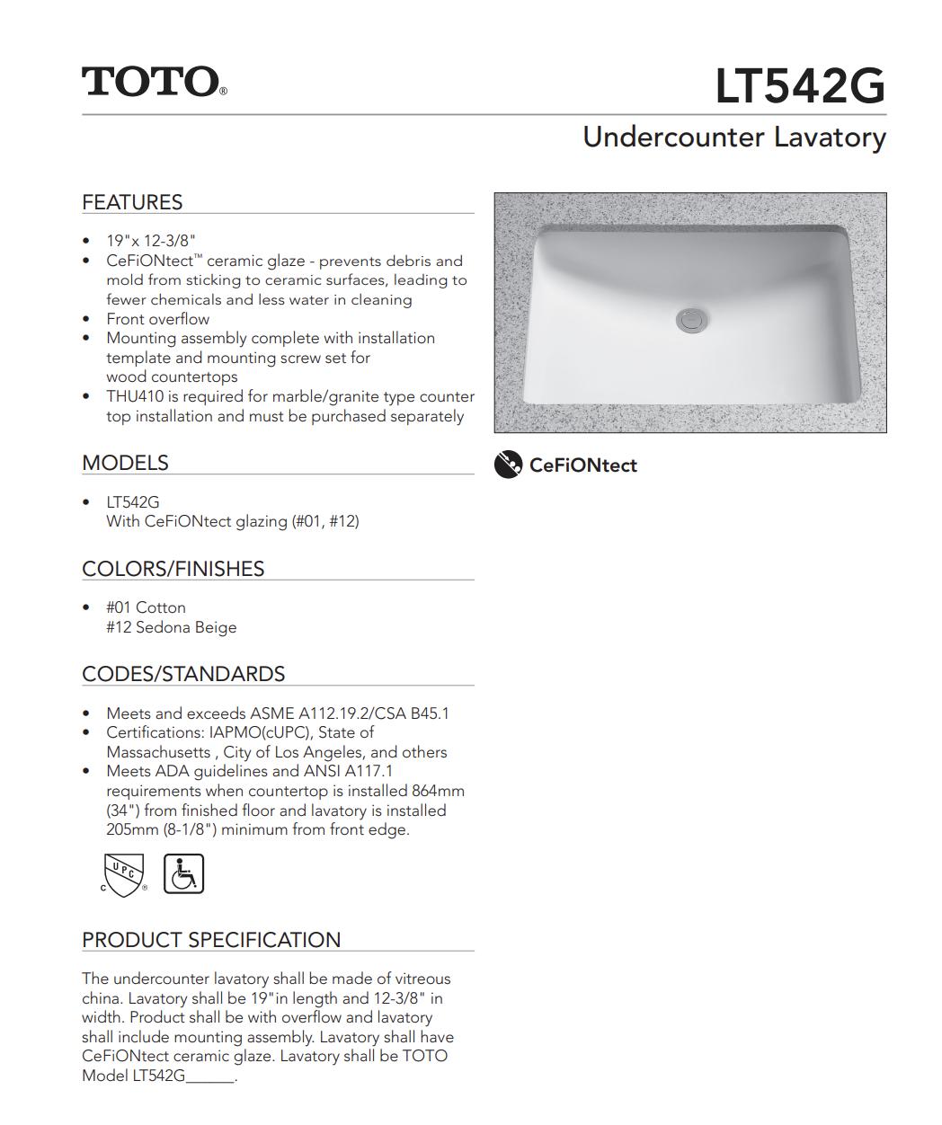 UNDERMOUNT BATHROOM SINK WITH CEFIONTECT, COTTON LT542G#01