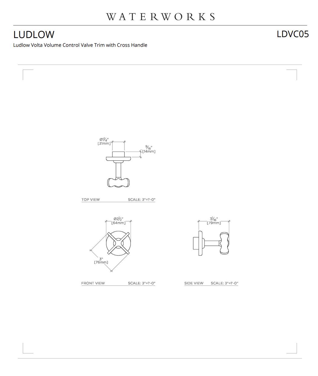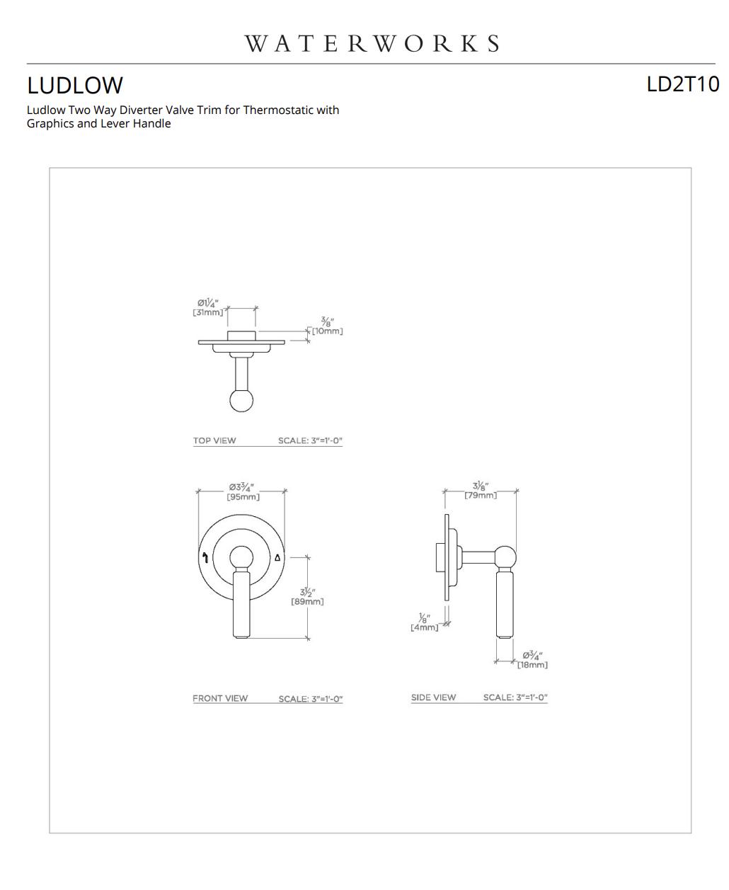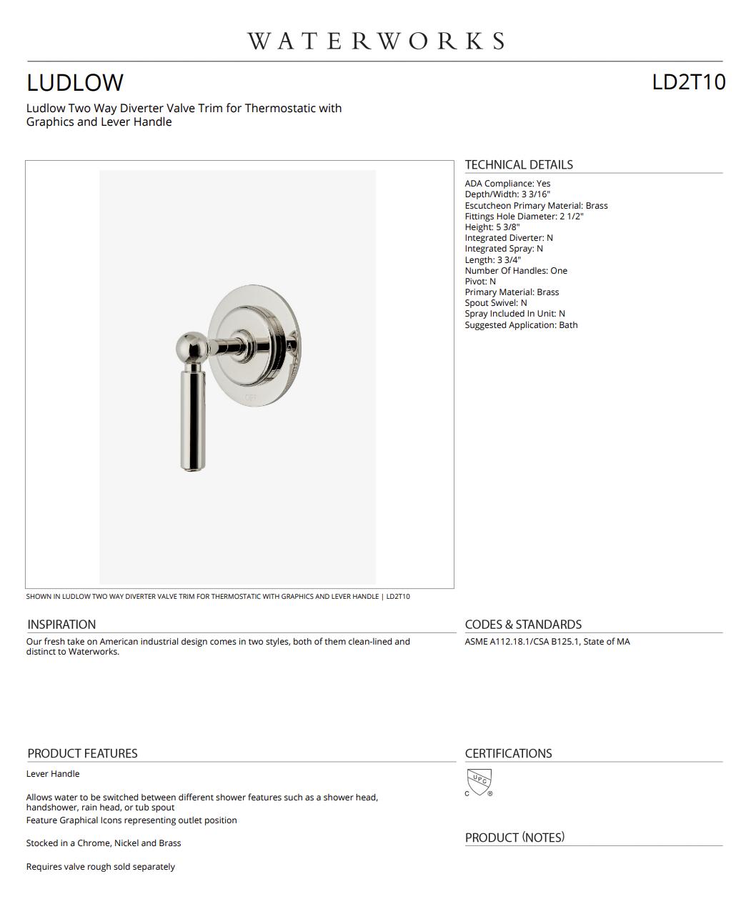 LUDLOW TWO WAY DIVERTER VALVE TRIM FOR THERMOSTATIC WITH GRAPHICS AND METAL LEVER HANDLE IN NICKEL