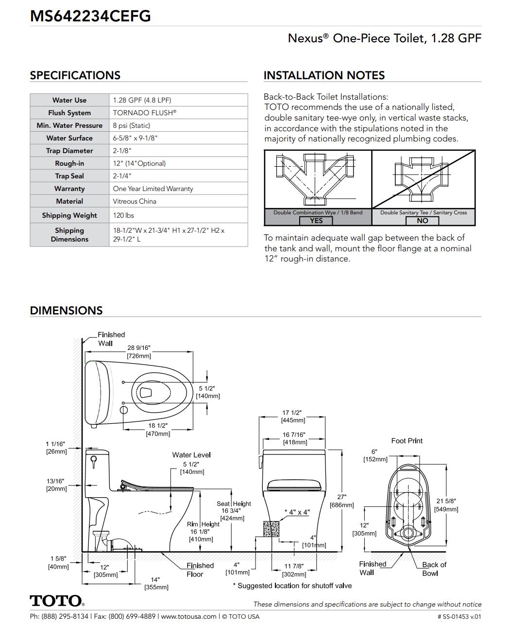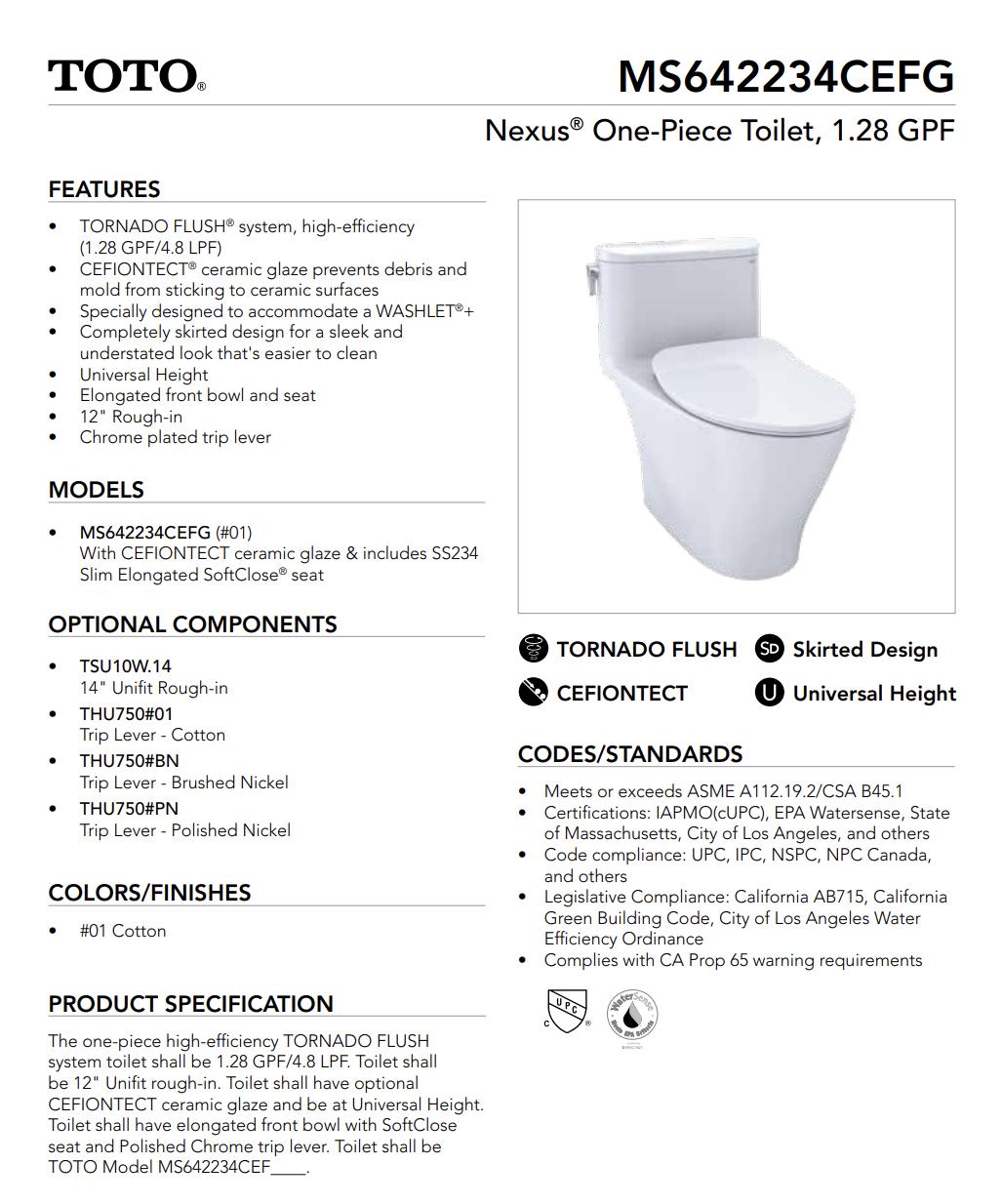 TOTO NEXUS ONE-PIECE TOILET -1.28 GPF, ELONGATED BOWL WASHLET READY CONNECTION