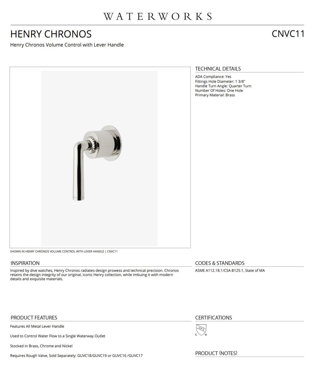 HENRY CHRONOS VOLUME CONTROL WITH LEVER HANDLE IN BURNISHED NICKEL