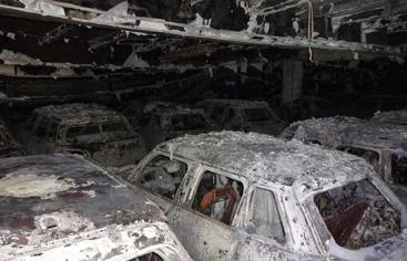 De ravage na de brand aan boord van het Japanse autoschip Fremantle Highway.