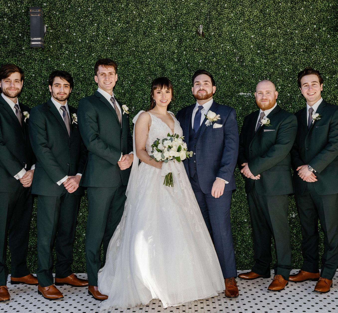 The 13,000 square feet of event space also features a full-service kitchen providing catering options for buffet and plated dinners for parties of 20 to 350 guests an outdoor terrace for a wedding ceremony a lux bridal suite equipped with hair/makeup stations, private bathroom, lounging & dining space and wine fridge our grooms lounge with flat screen TVs, private bathroom, bar & dining space - a man cave sanctuary