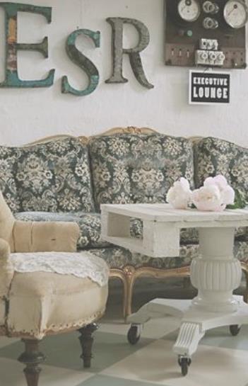 Uno de los materiales que más se utiliza en la decoración vintage, es la madera sin tratar o decorada con brocha amplia e imprecisa en tonalidades pastel El mimbre se emplea en muebles principales como sofás, divanes y mesas, combinada con textiles de alta calidad.