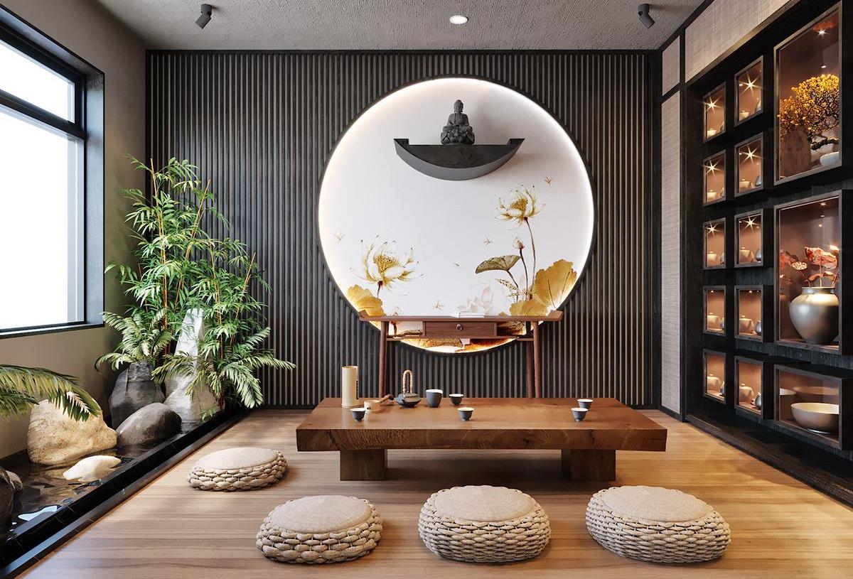 Los espacios decorados al estilo zen transmiten como ningún otro una sensación de paz y tranquilidad. La iluminación (normalmente sutil, escondida e indirecta) es una de sus notas mas características, así como el uso de tonos neutros: blancos, grises y beiges, combinados con negros y en algunas ocasiones notas puntuales de color (fundamentalmente rojo, el color de la bandera japonesa)