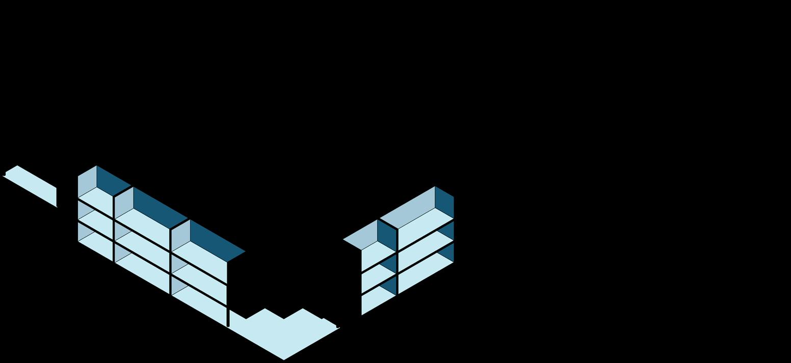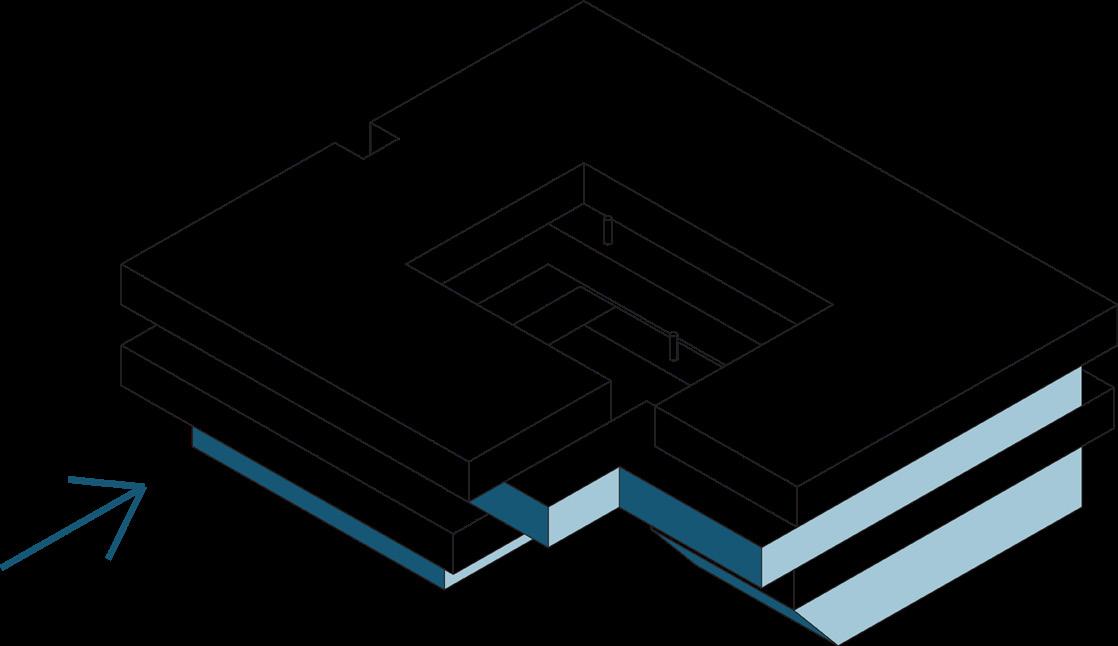 Iteration 2 introduced a separate amenities system, elevating it to maintain the public green space. The residential spaces were divided to add more depth. 2 - 3