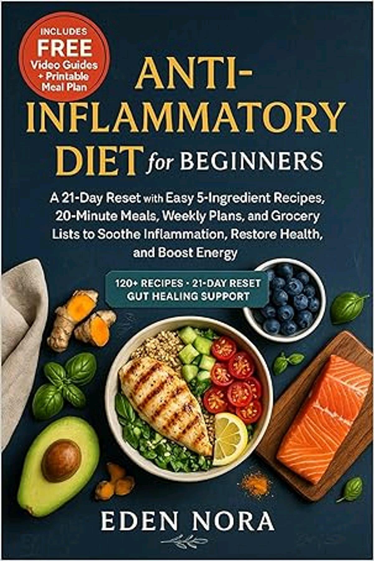 Quick download of 'Anti-Inflammatory Diet for Beginners: A 21-Day Reset with Easy 5-Ingredient Recipes, 20-Minute Meals, Weekly Plans, and Grocery Lists to Soothe Inflammation, ... Medicinal Plants and Herb's Books)' by Eden Nora.