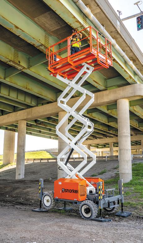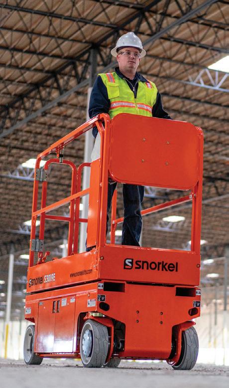 Snorkel New Zealand continues to offer a wide range of aerial work platforms, including electric and rough-terrain scissor lifts, articulated and telescopic boom lifts, towable cherry pickers, and materialhandling equipment.