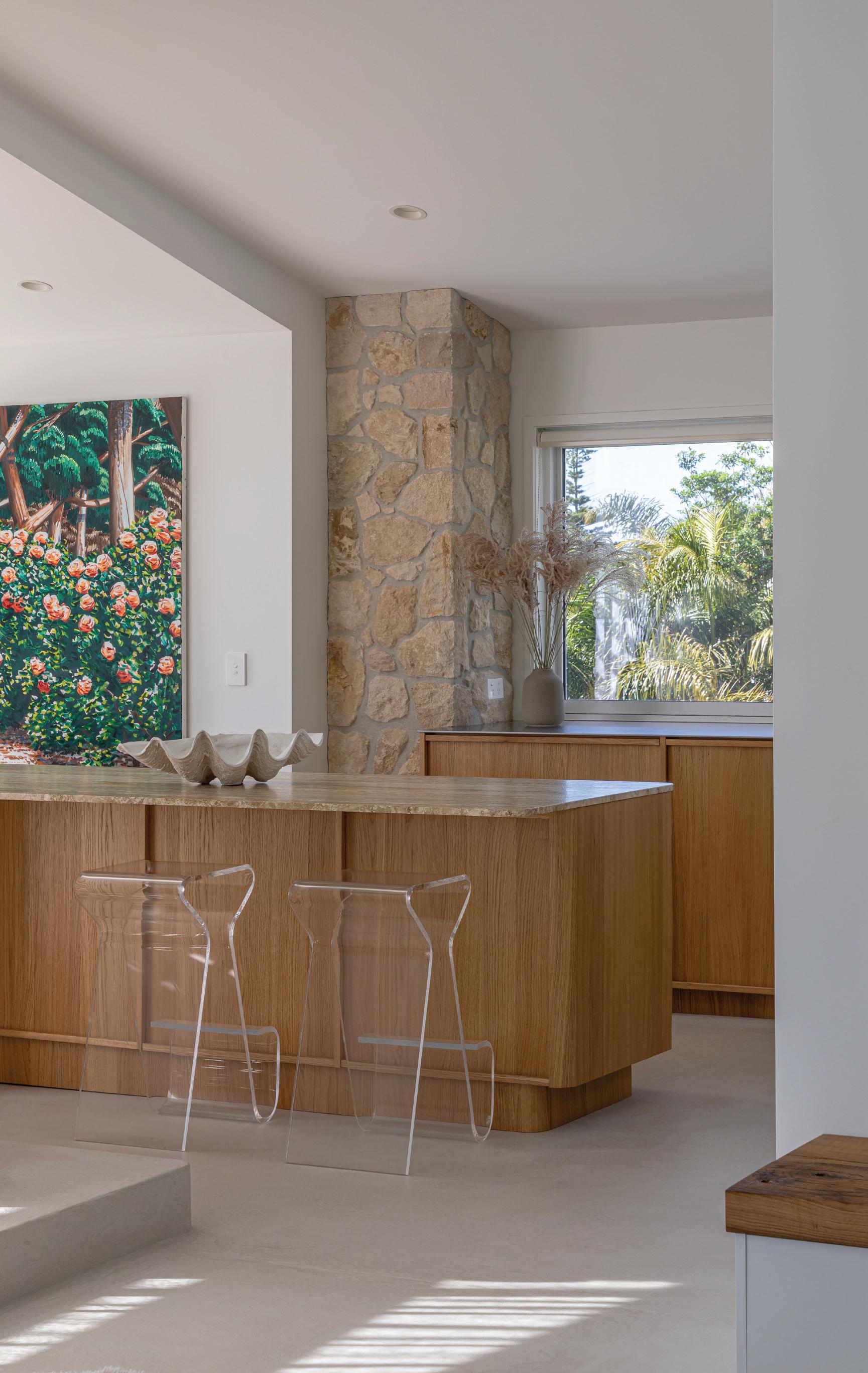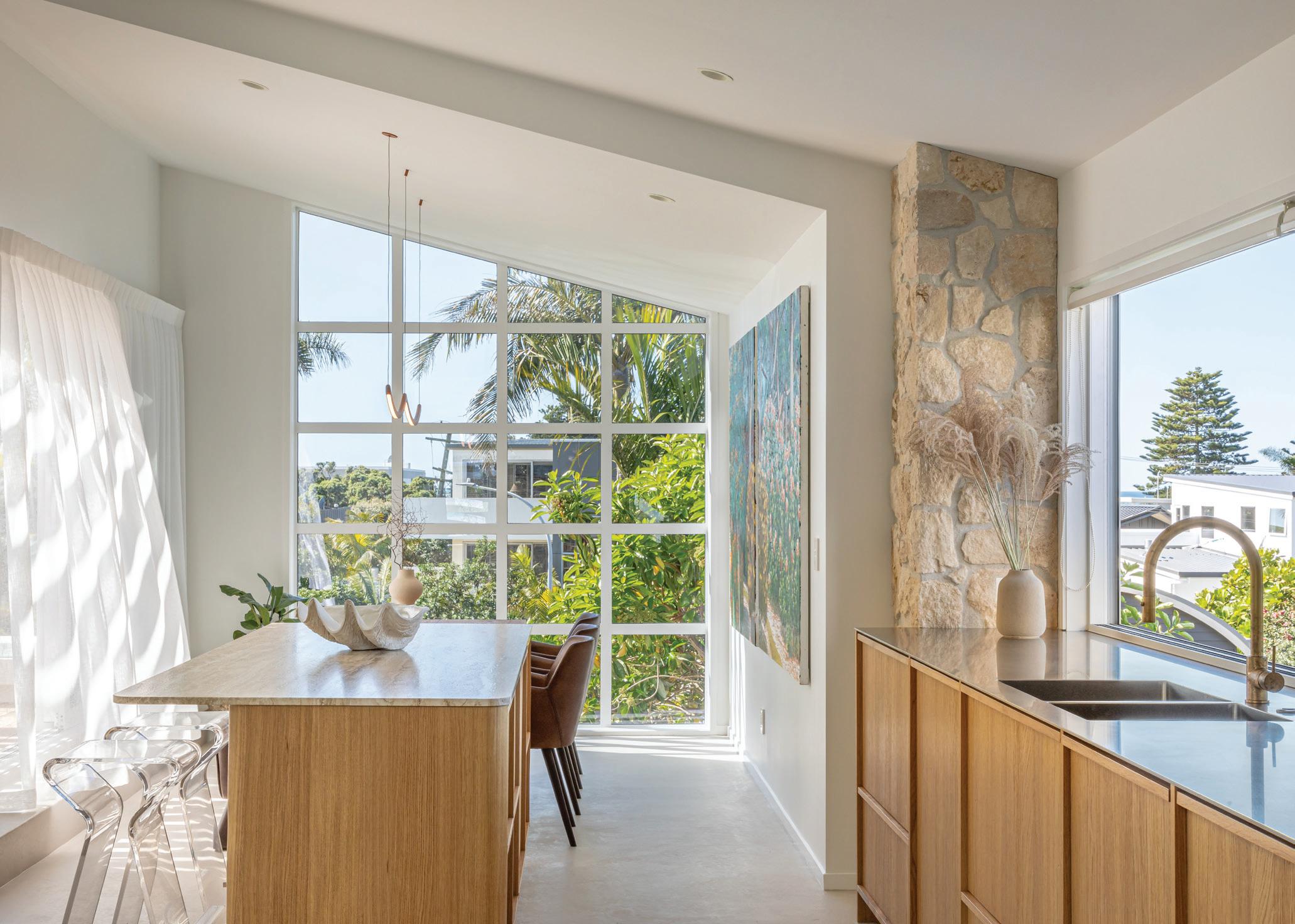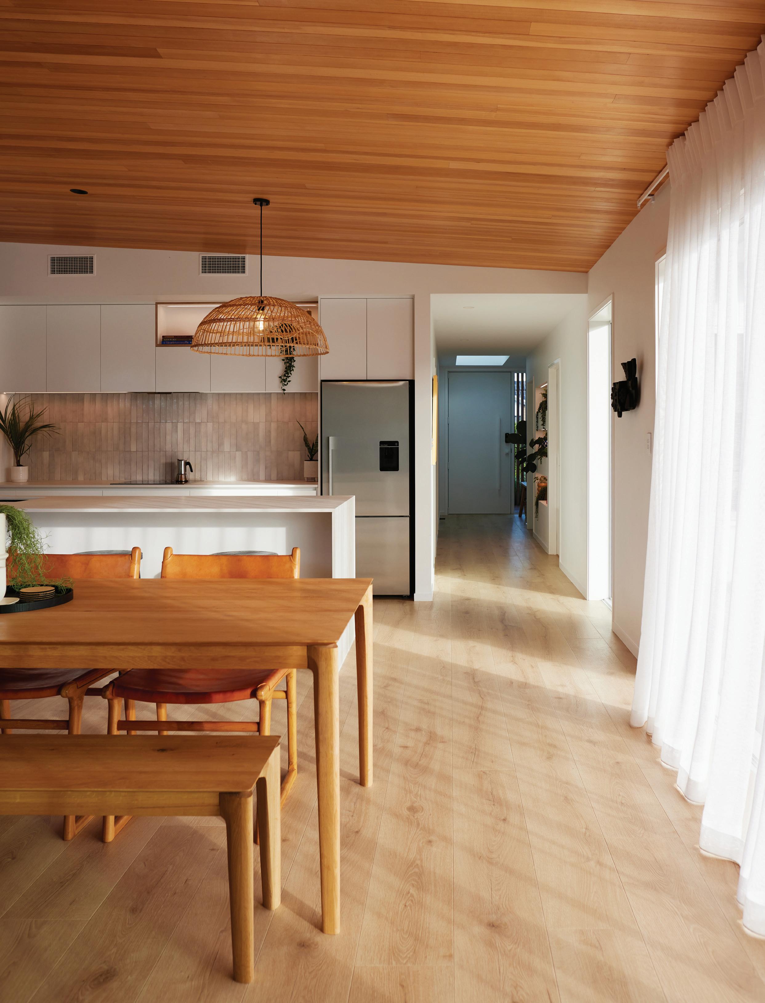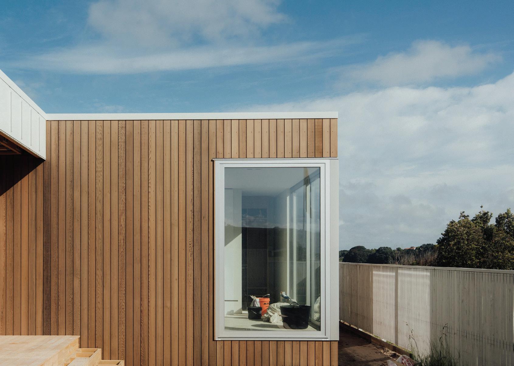 The renovation was complicated by the rotting of the original 1980s cedar weatherboard, which added time to the project and required the builders to reframe most of the home.