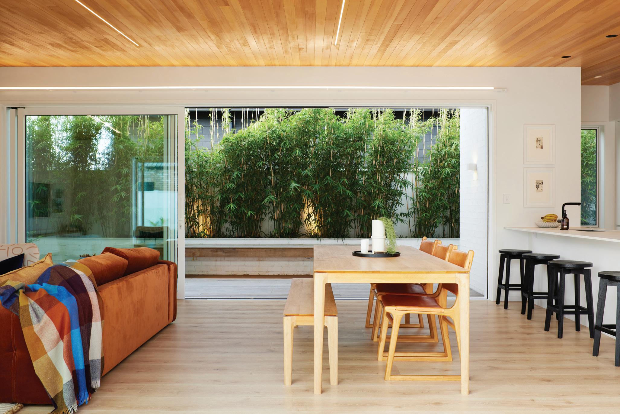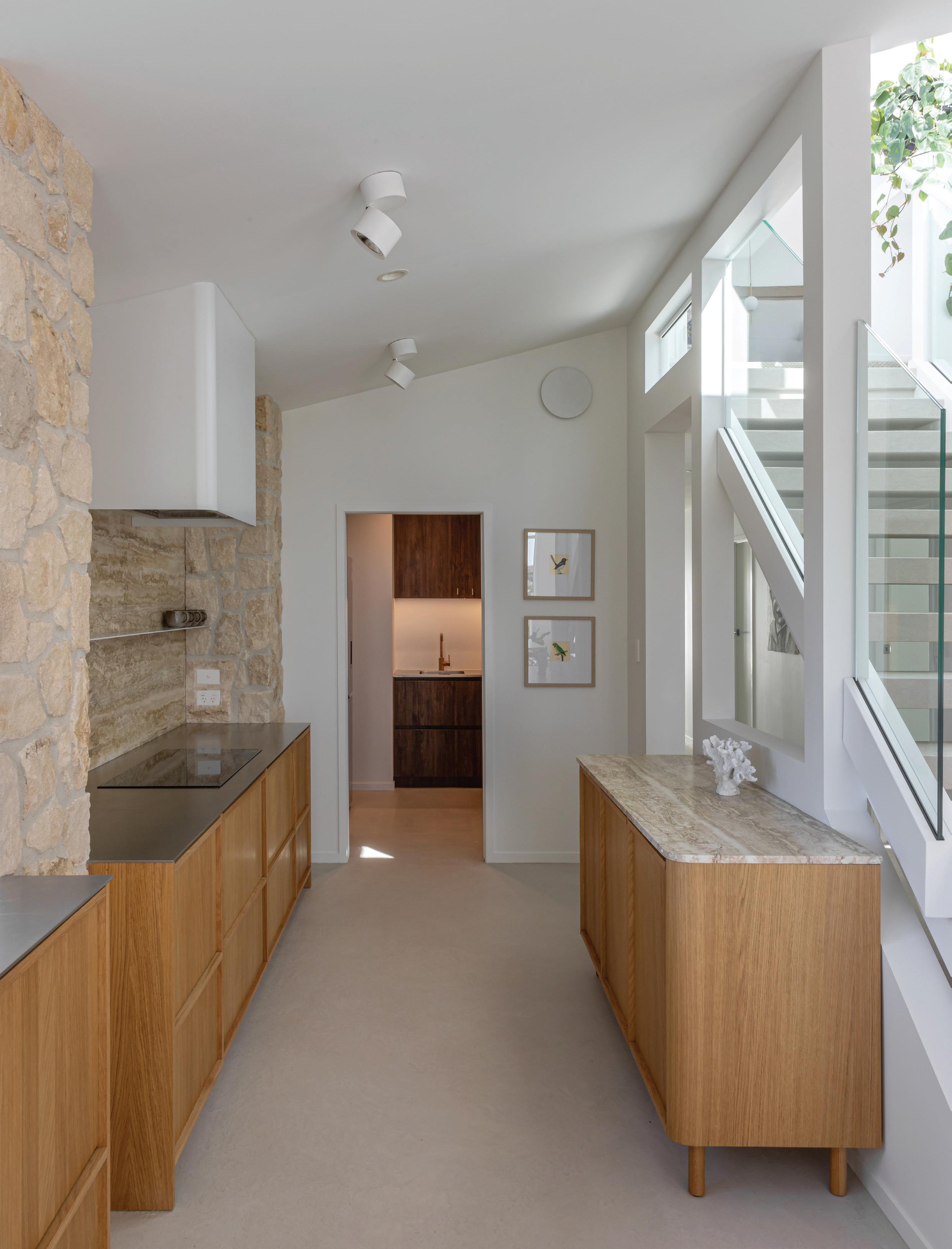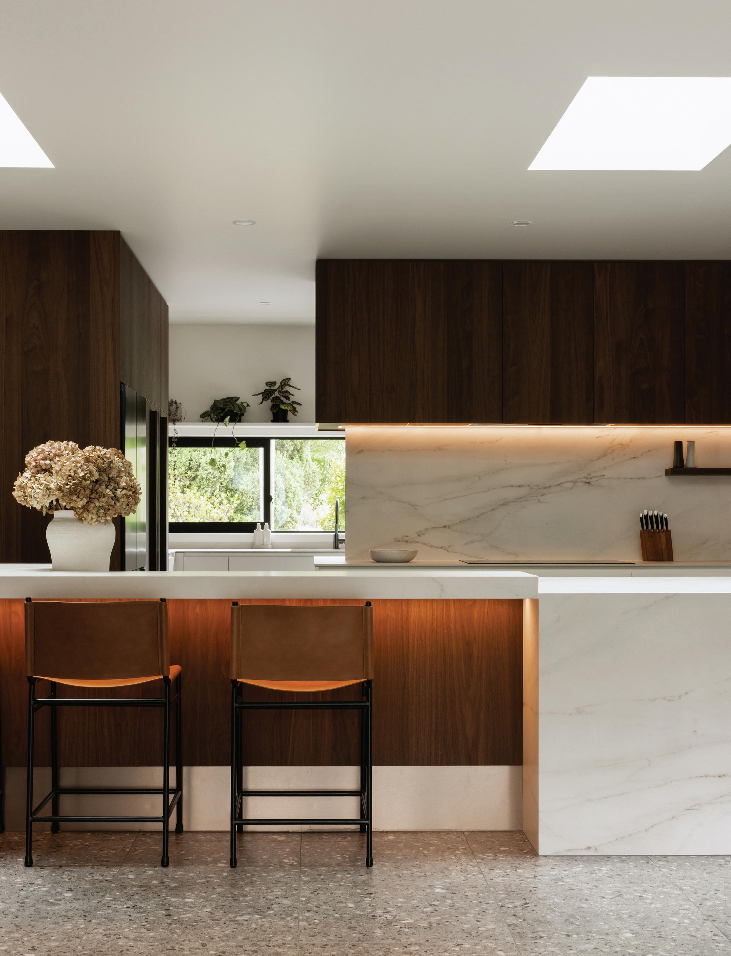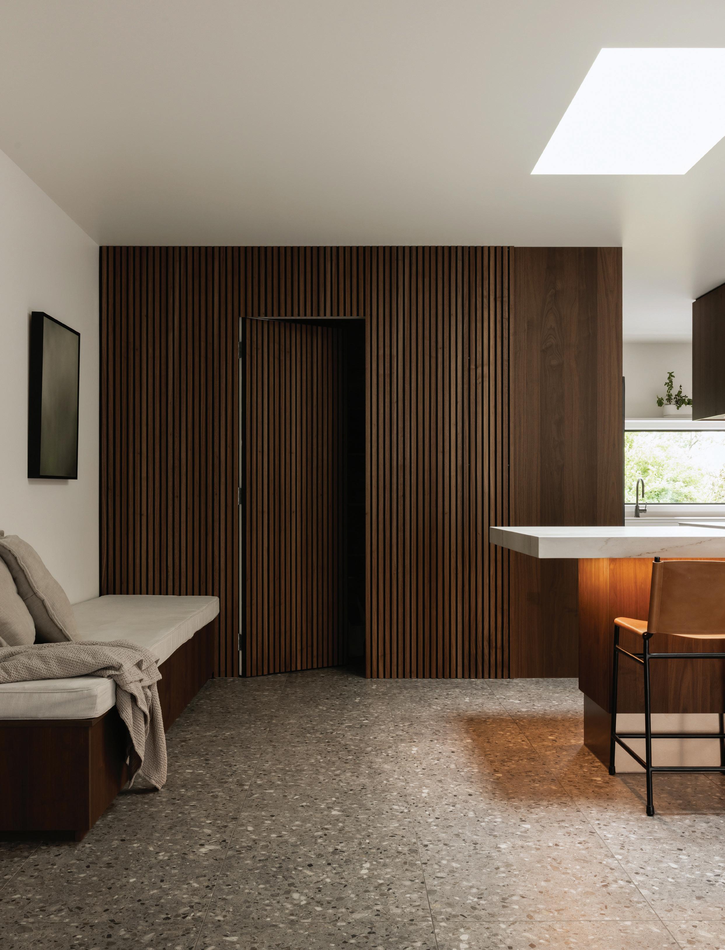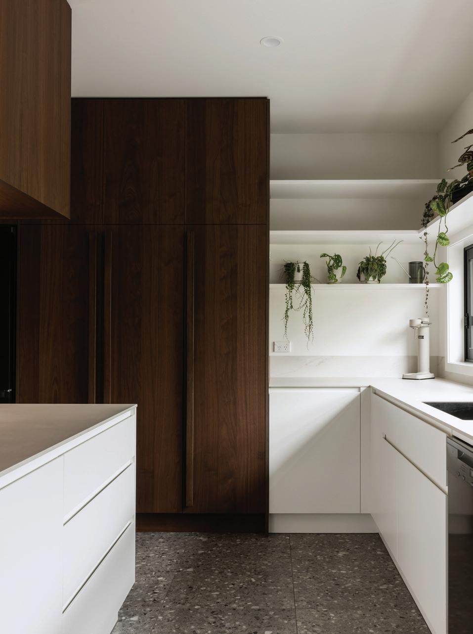 The renovation was complicated by the rotting of the original 1980s cedar weatherboard, which added time to the project and required the builders to reframe most of the home.