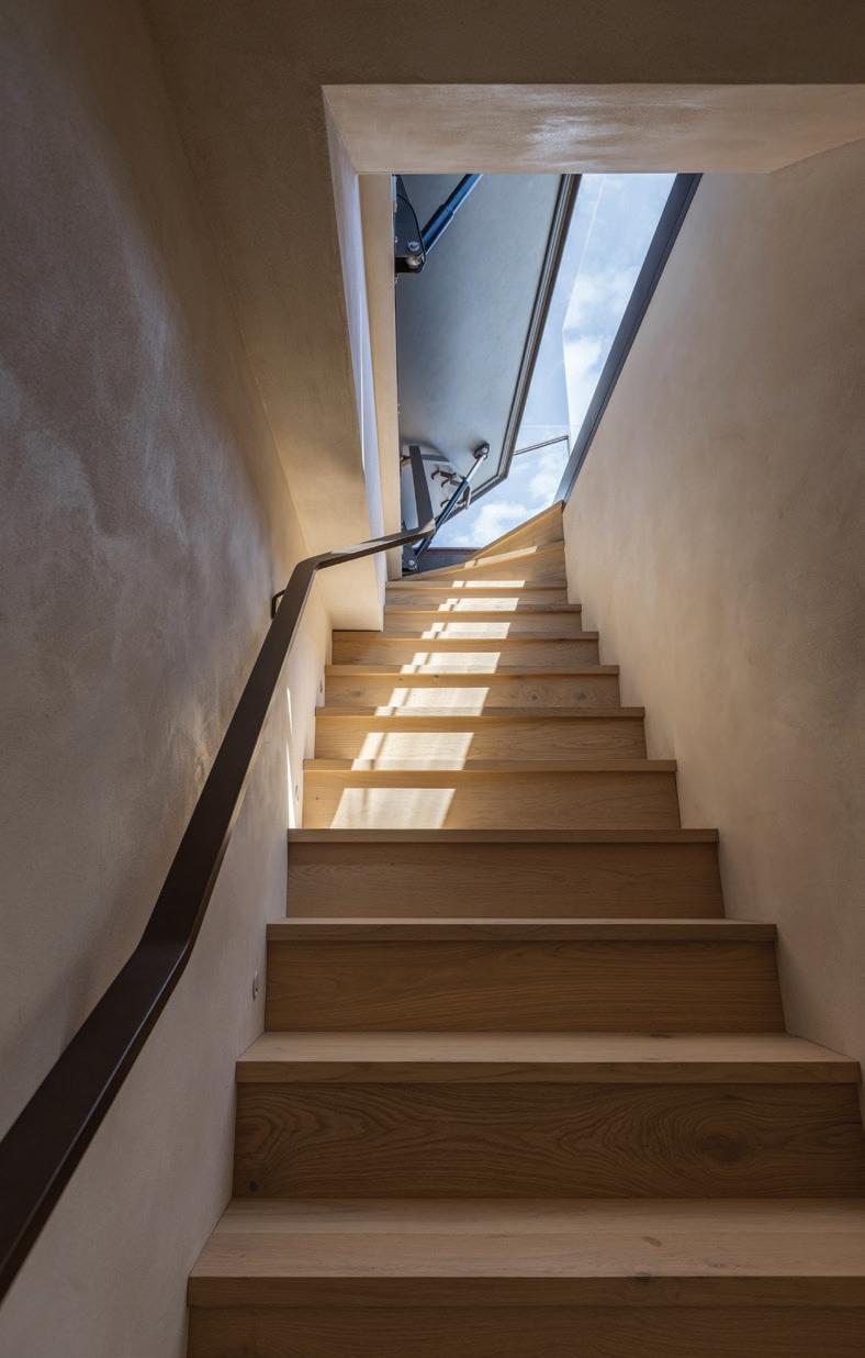 Builder Alex likes how well the house flows from the entrance at the top, right down to the fourth level, along with the raked ceilings and decks that follow the house down the slope.