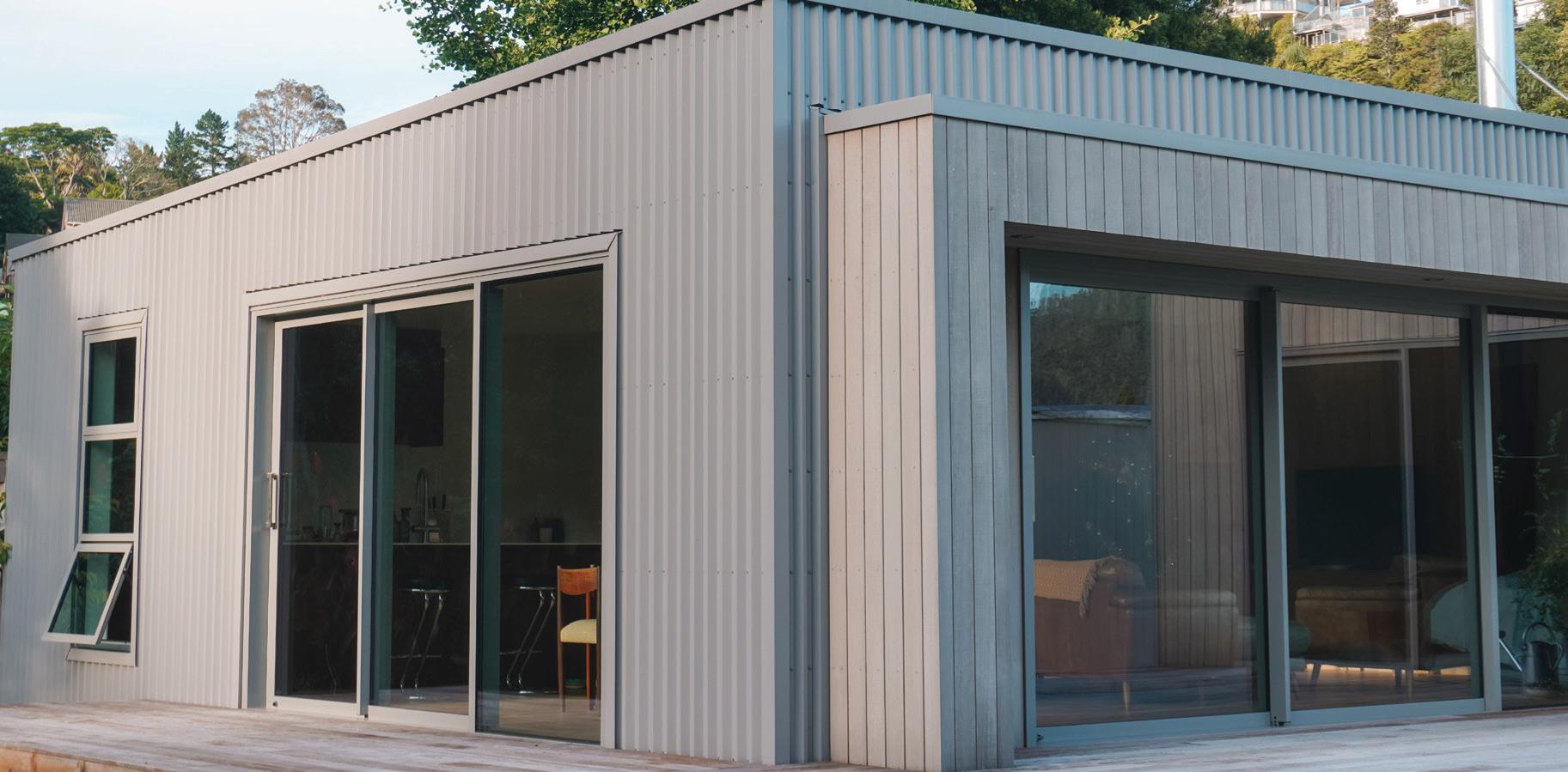 Ben was glad for the opportunity to work with his friend on this project and was called in to design the details for the steel cladding and carry out the installation. “They were looking for a modern bach vibe,” says Ben. “It was their first self-build and they were working with a tight budget and wanted clean lines on the exterior.”
