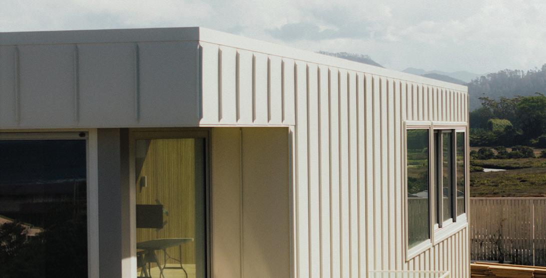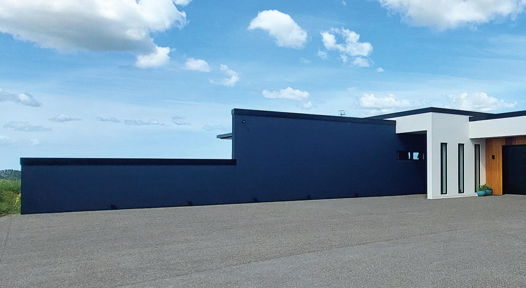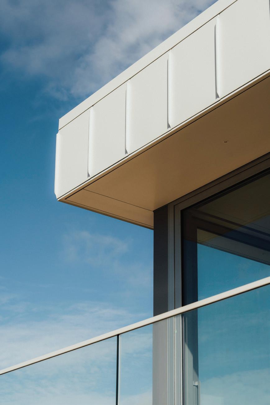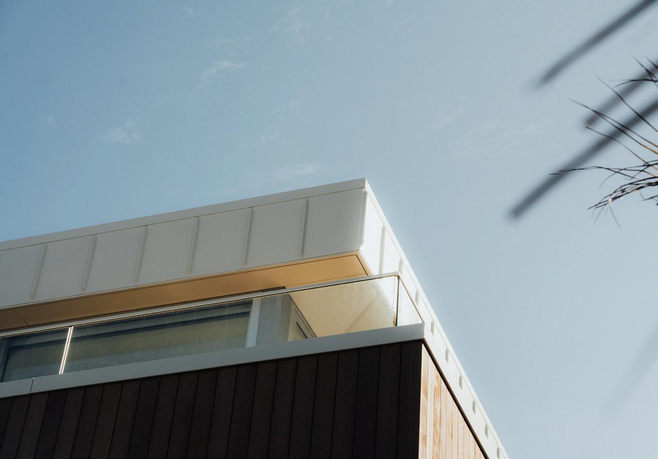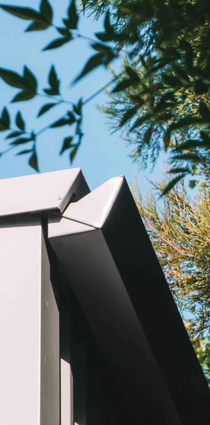 The Custom width panels on the front of the home are 10 metres long. This longer than usual length posed a challenge for Ben and his team who had to hand form the panels on site. “We made a 10-metrelong table and cut the sheets down to the exact size.” Ben chose a more customisable roofing option than was originally specified for this home. “We formed scallops on the ends of the seam to create a nice curve and also added a scalloped curve from the top into the parapet cap which gave it a really nice look. It created the clean