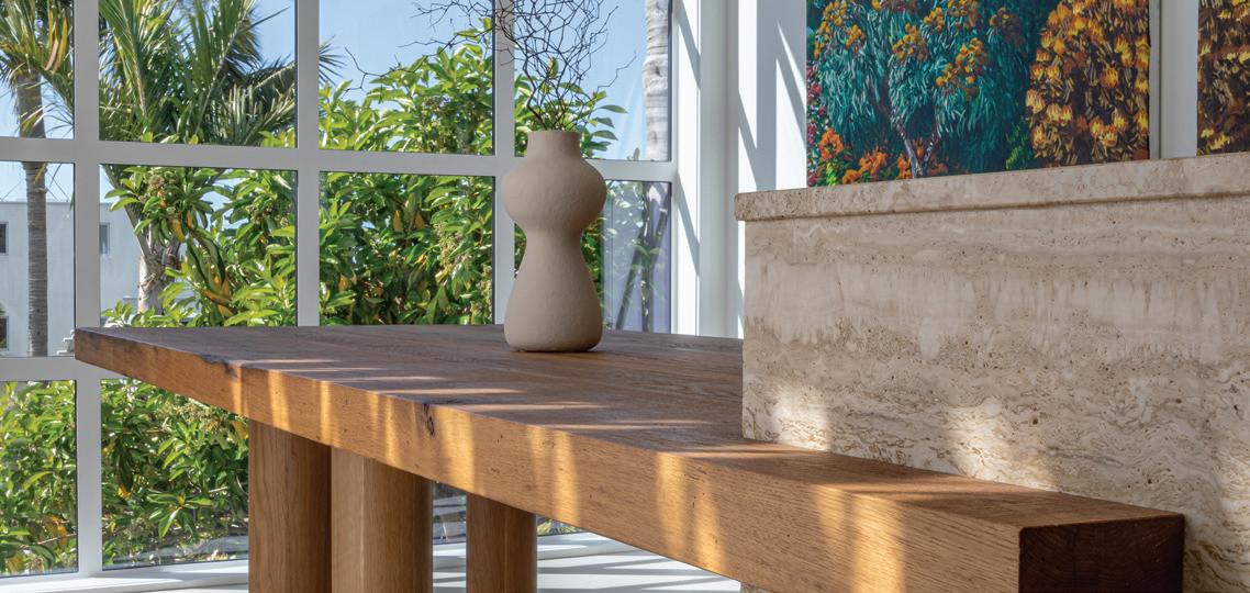 Interior designers are layering with different material combinations, such as sheer linens paired with roomdarkening drapery or roller blinds paired with soft linen for an elegant interplay of texture, light and shadow.