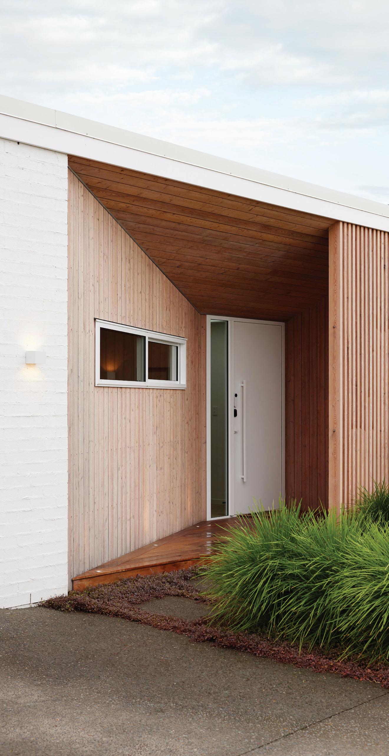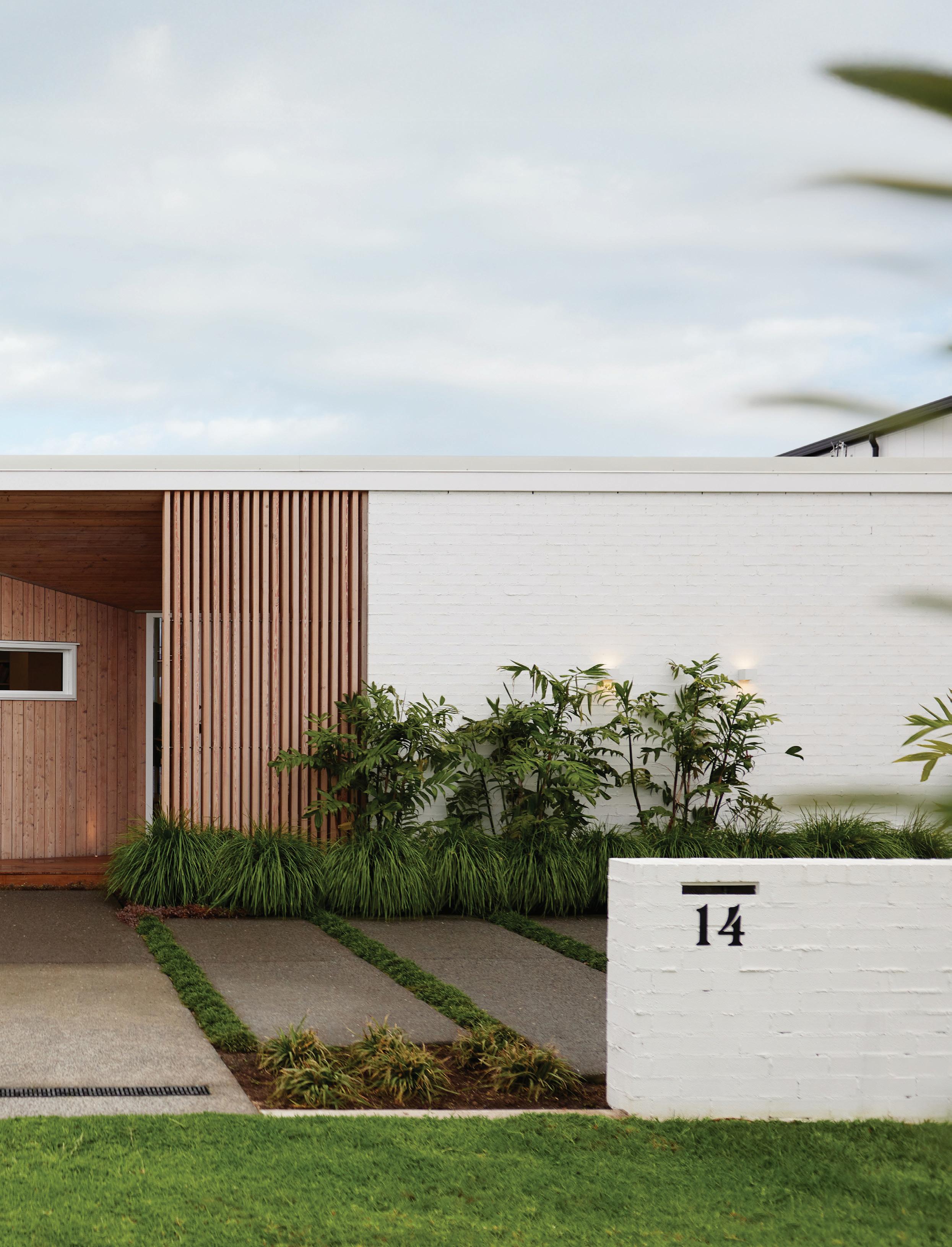 The exterior of this coastal home stands tall behind the dunes of Waihi beach. For Ben, clean lines and refined details were essential to sympathetically bring the 1980s cedar home up-to-date.
