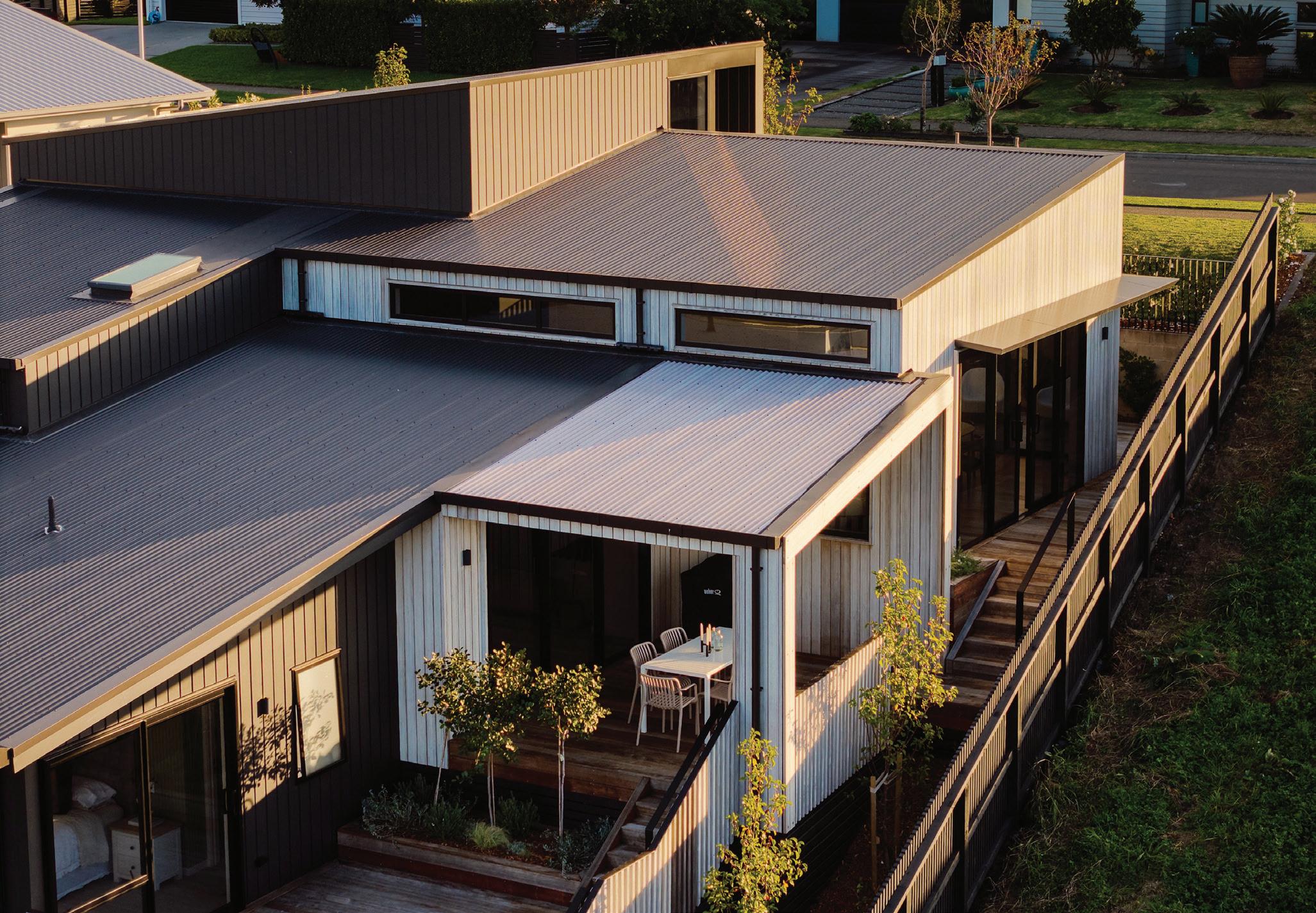 Ben Jefferson of Kaimai Roofing fitted the steel cladding on this home for a close friend and local Tairua based builder who designed the beach retreat for his family.