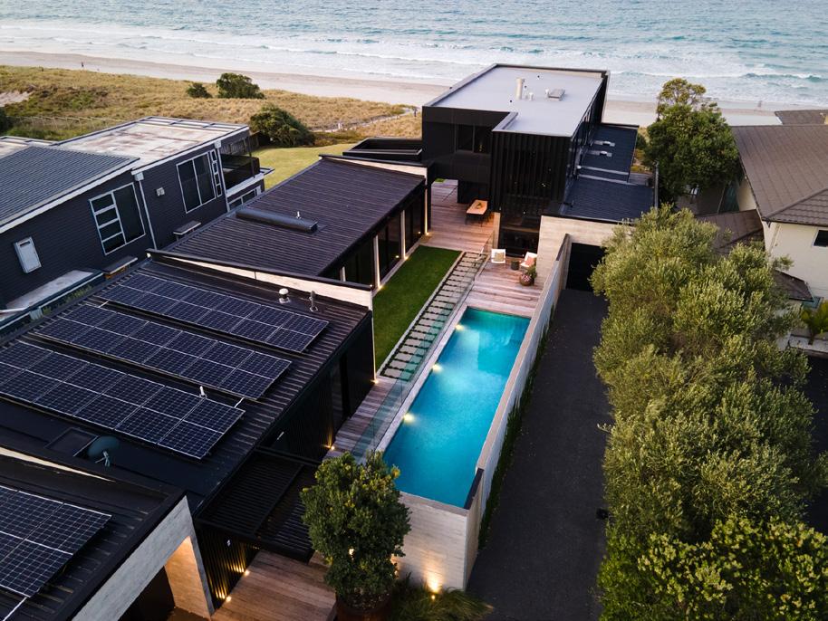The Euramax aluminium cladding and roofing is imported from Europe by Ambro Metals and supplied by Linked Group. Ben likes the cohesive exterior on this beachside home.