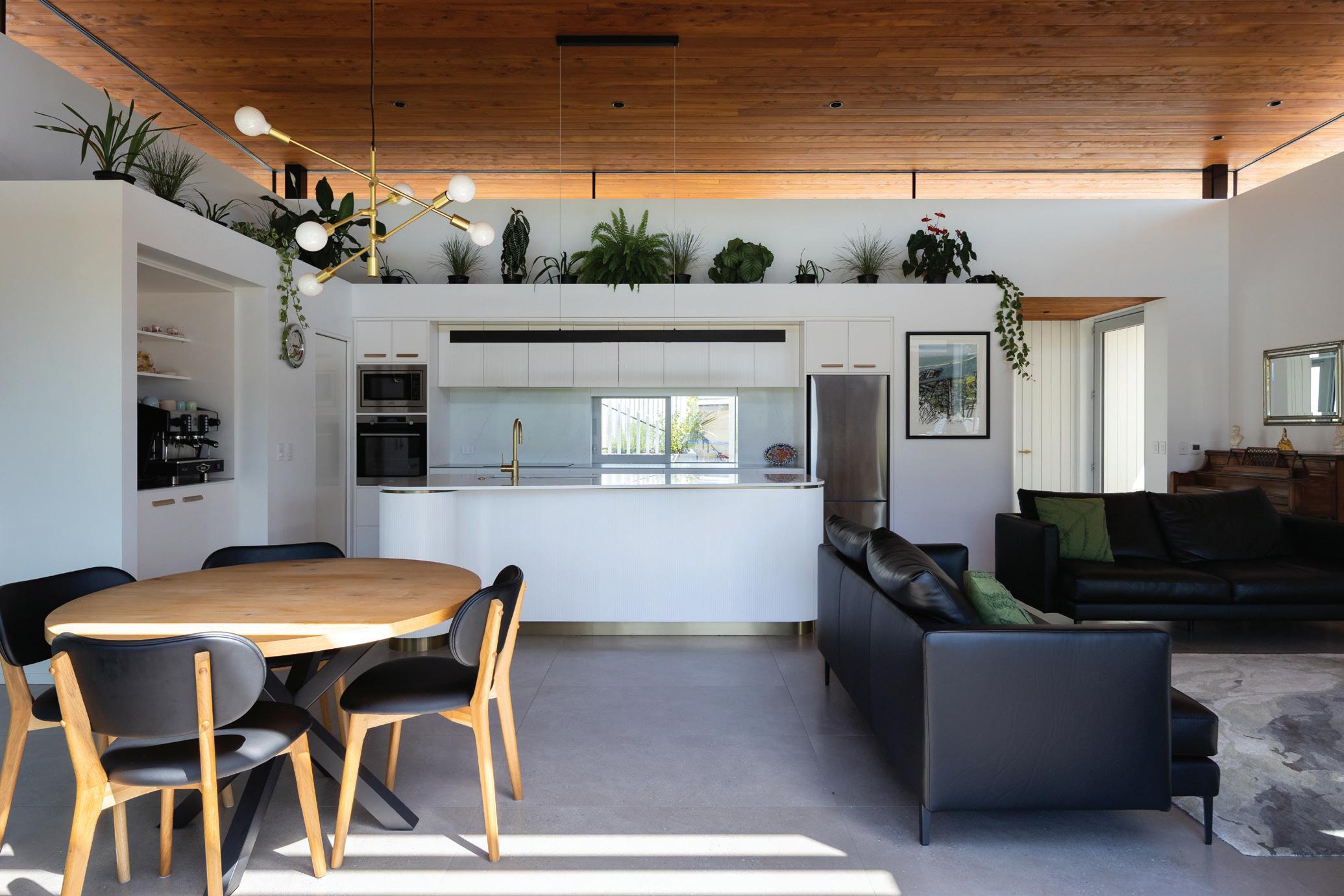 Though modest in footprint, the home feels generous thanks to its layered detailing and carefully considered features. The covered outdoor area, complete with a Stratco Lourve system and external blinds, creates what Brittany calls “an additional room where you can spill out from the main living area into”. Yet it is the roof which remains the defining feature. “Not only does it look great and make the otherwise compact space feel roomy, it also does the job with 800mm eave overhangs to protect the house thermally by restricting sunlight access during the hot summer months and allowing in the sun during the cold winter months,” Brittany reflects. www.staplearchitecture.co.nz