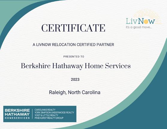 Our relocation professionals can move a single employee or an entire company with the same level of care� Our clients rely on our full-service relocation network for a stress-free and easy move� Berkshire Hathaway HomeServices Carolinas Companies has earned a reputation for building lasting relationships based on trust and care with our clients and the markets we serve Our top professionals have strong ties to our local communities and are committed to exceeding expectations for exemplary service every time.
