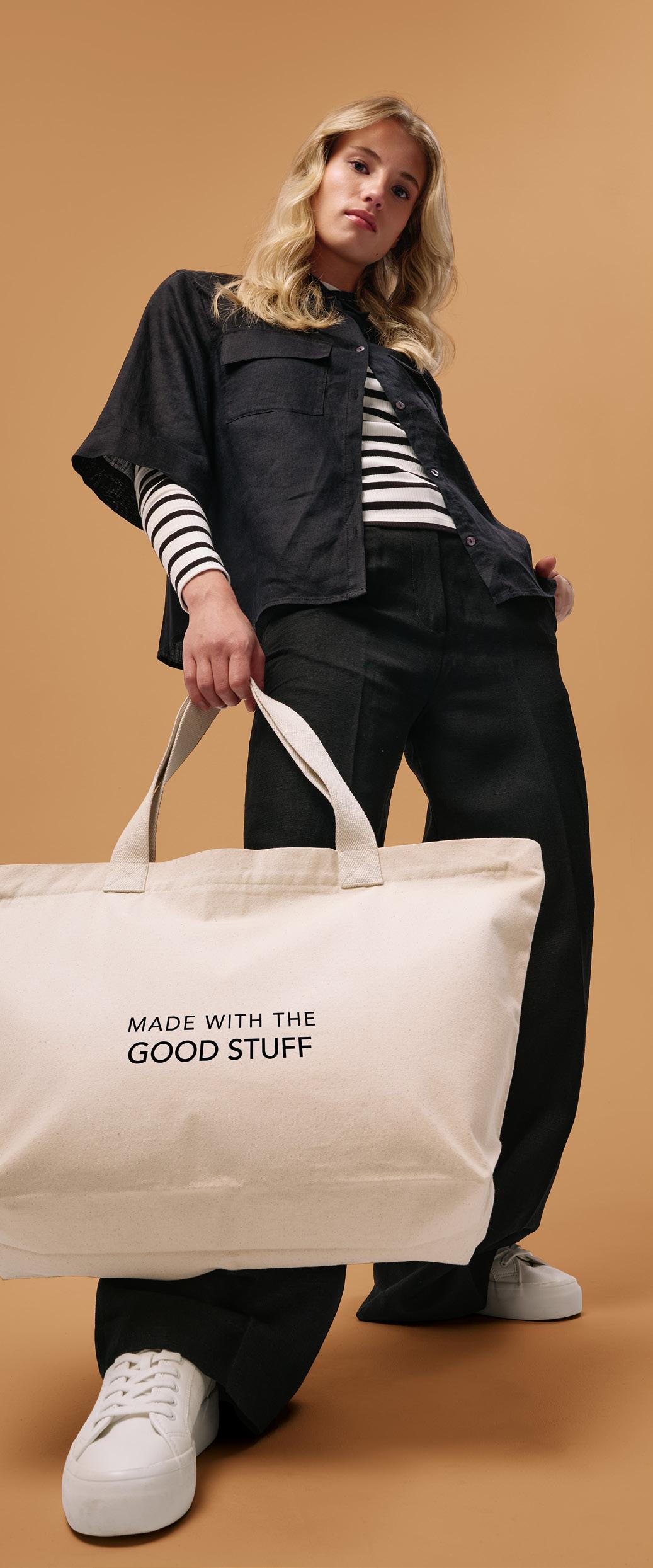 DESIGNED FOR LONGEVITY We design every bag with purpose, from reinforced handle stitching and weight‑tested builds to timeless shapes that won’t date. Our goal is simple: bags that are chosen, kept, loved, and reused not thrown away.