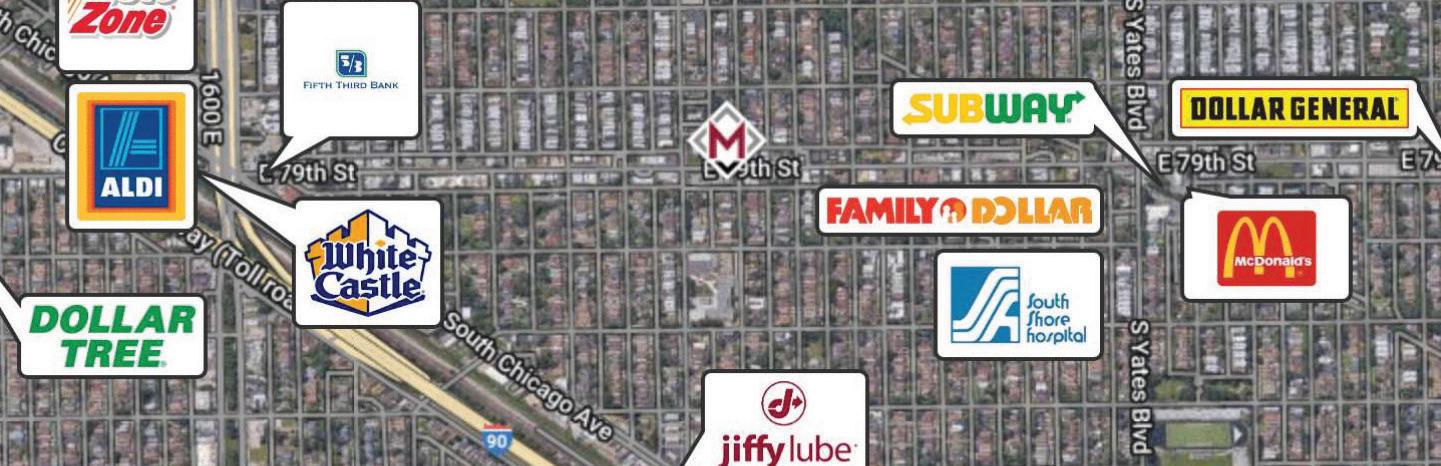 2015 E 79th St occupies a signalized corner at 79th Street and Jeffery Boulevard, drawing 19,000+ VPD. The former Walgreens offers 12,000 square feet of retail, 3,000 square feet of storage, a fully operational drive-thru and 40 dedicated parking stalls, providing a turnkey option for retail, medical or service users in Chicago’s South Shore.