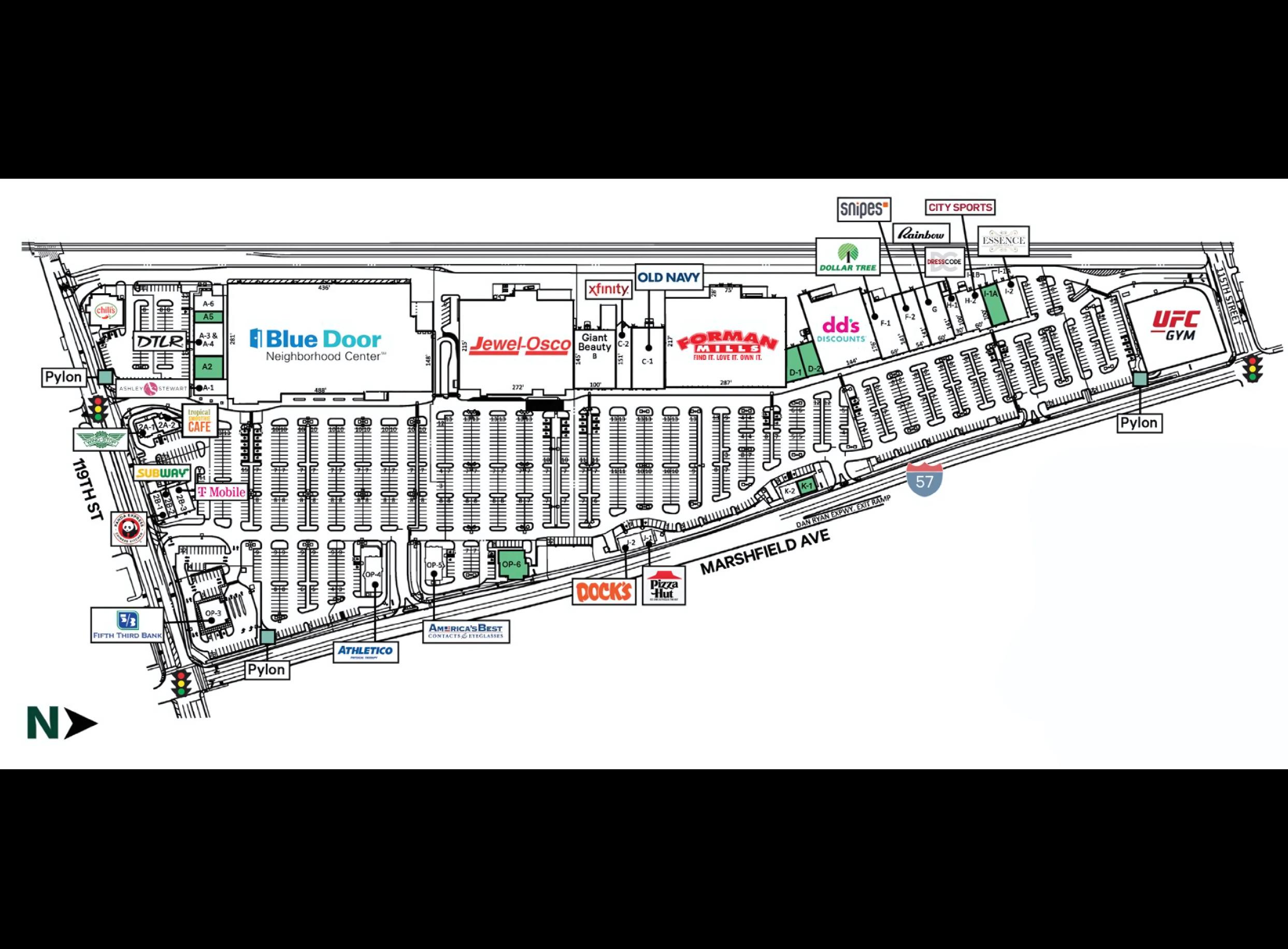 • Interstate & Transit Connectivity: Direct I-57 frontage, a 119th Street bus stop, and expansive surface parking provide unmatched visibility and easy customer access for growing retailers.