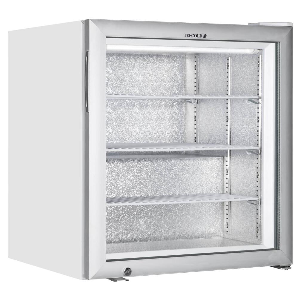 La gamme UF-VSG de vitrines à froid négatif regroupe les versions à froid ventilé de nos congélateurs inox à porte vitrée. Elle est disponible dans plusieurs tailles différentes et offre une grande souplesse d’utilisation grâce à ses tablettes réglables. Un système de froid ventilé très efficace garantit une température homogène dans toute l’armoire. Un thermostat numérique très facile d'utilisation permet de régler la température de votre choix. Le dégivrage est entièrement automatique.