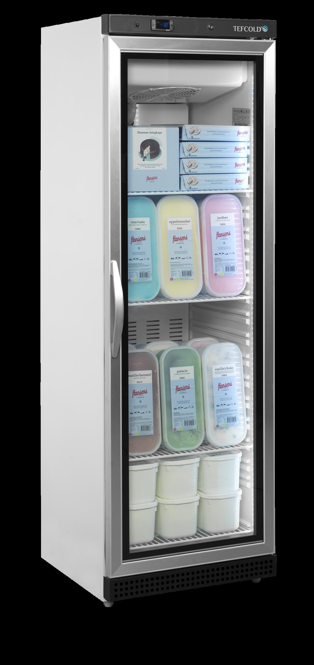 The UDRS range of scoop ice cream freezers is a part of TEFCOLDs premium freezer program. It offers high quality and an elegant design with a lower front, which ensures great visibility of the ice cream. The freezer has lift up rear lid, which help insulate and save energy, when you are not serving ice cream over the angled glass guard. It is of course suitable for Napoli pans (not included).