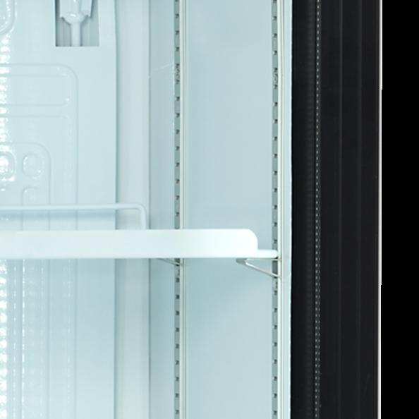 La gamme CEV est notre gamme de réfrigérateurs à boissons la plus populaire. Elle a tout ce qu’il faut pour une présentation optimale de boissons bien fraîches : une porte vitrée avec éclairage LED intégrée au cadre de porte, des tablettes réglables pour plus de flexibilité, du froid ventilé pour une température homogène dans l’armoire. En plus de cela, elle convient parfaitement au branding. Par défaut, elle permet au choix une ouverture à droite ou à gauche.