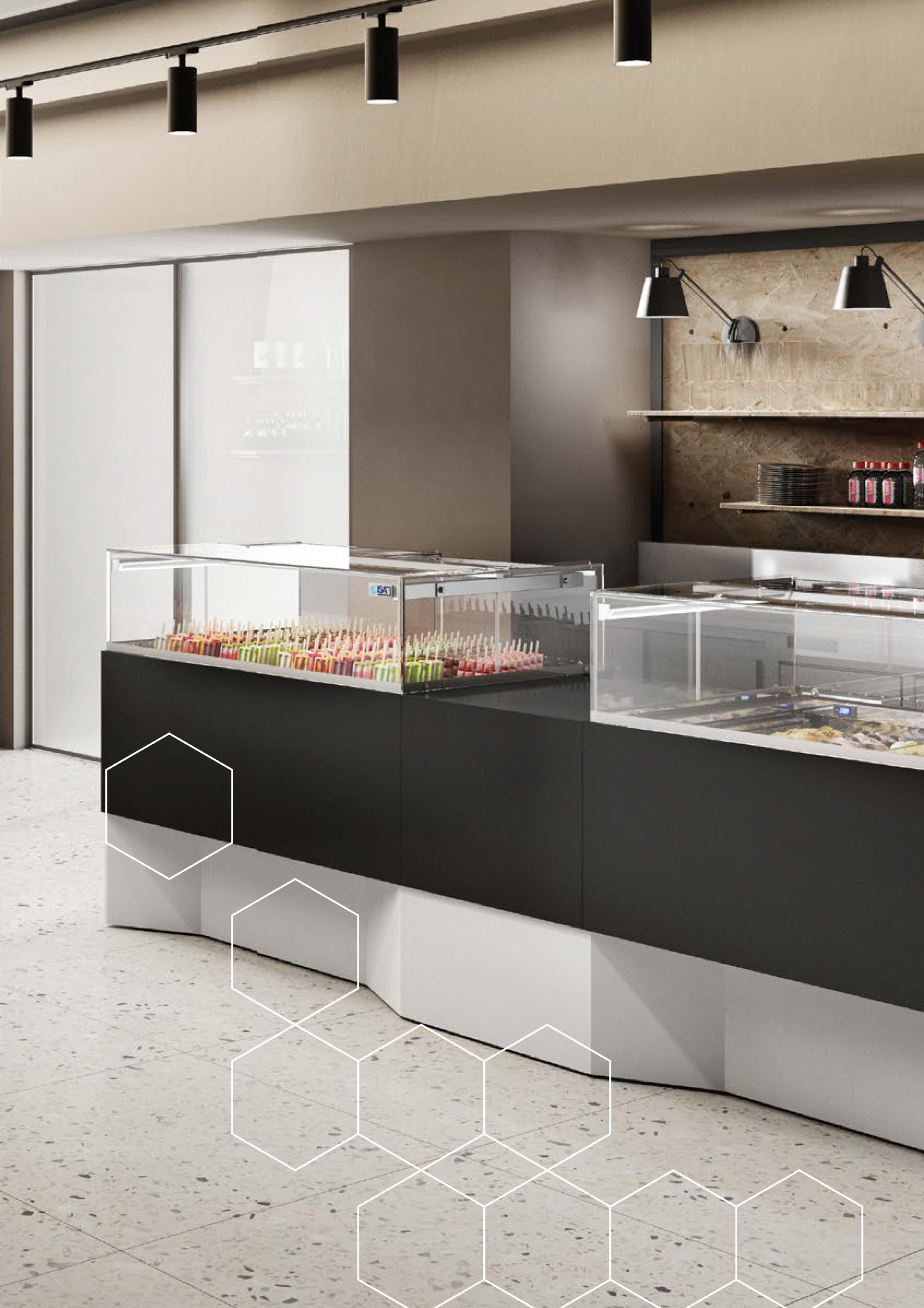 Dodáva sa v širokej škále variantov a veľkostí, od prístenných vitrín, minibaru až po veľké obslužné pulty na optimálne vystavenie potravín.
