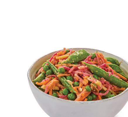 Crisp watermelon radish, sweet peas, and carrots meet crunchy almonds, all tossed in a bright tarragon lemon dressing.