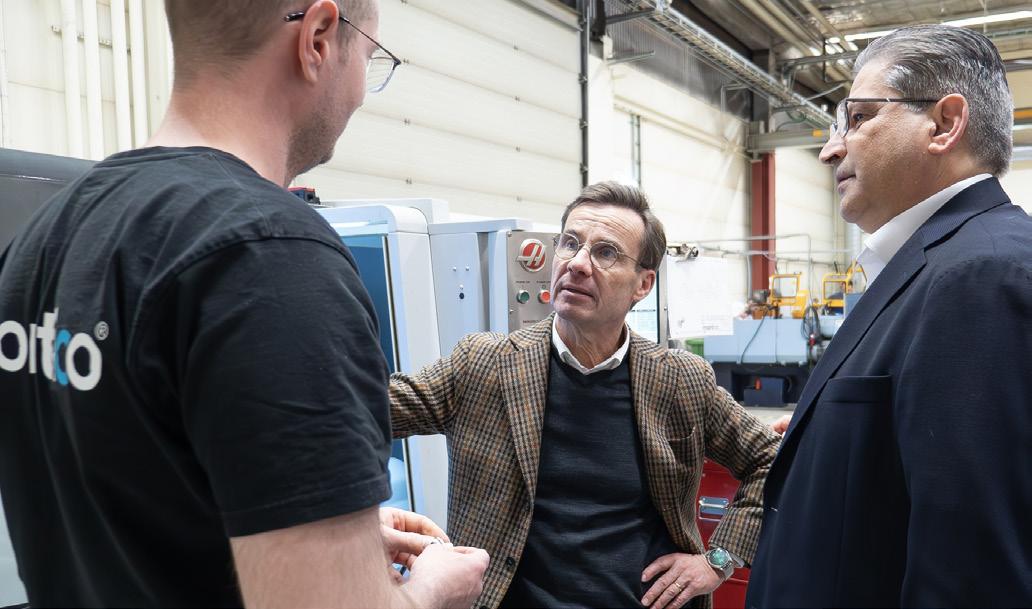 Statsminister Ulf Kristersson visade stort intresse för Monticos verksamhet vid sitt besök i Växjö.