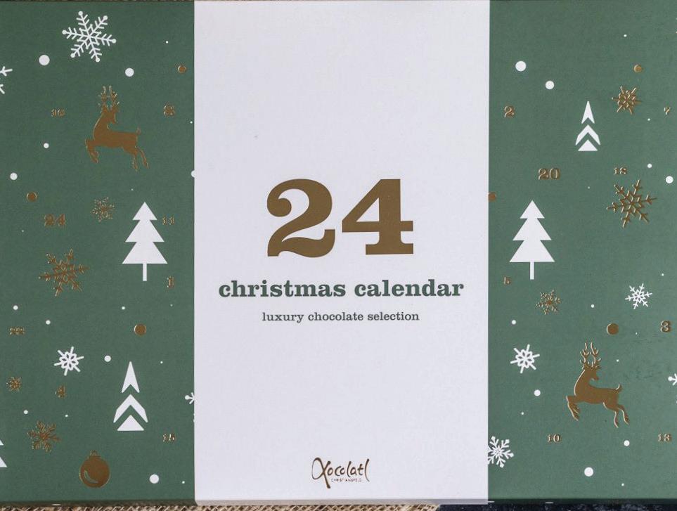 Skøn chokoladekalender til 24 dage. Winterland Green.