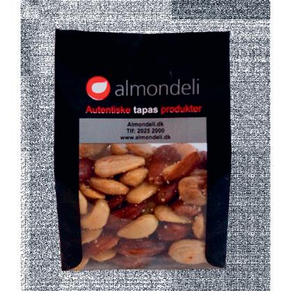 1 Ps. Mandler med krokant amber chokolade og røde bær.
