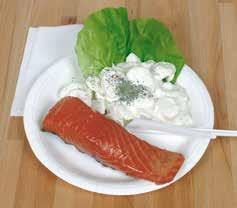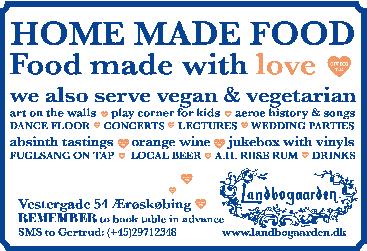 Essen zum Mitnehmen Räucherwaren können auch täglich zum Essen für zu Hause mitgenommen werden – auch vakuumverpackt. Alle Menüs der Räucherei gibt es zum Mitnehmen in 100% kompostierbarer Einwegverpackung, sodass man sie an einem schönen Plätzchen auf Ærø oder auf der Fähre auf dem Weg nach Hause verspeisen kann.