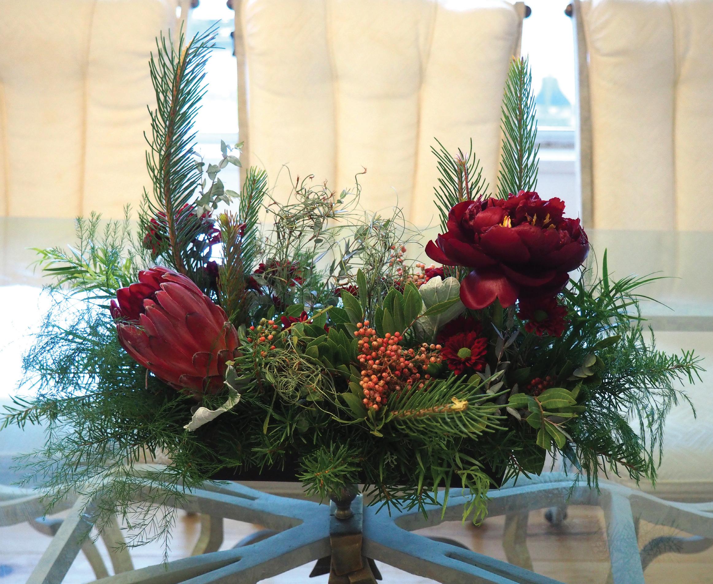 A special time of year to explore various textures and patterns of foliage, enjoy the splendor of the many hues and tones of red flowers, and delve into how different berries and branches can add interest to a design.