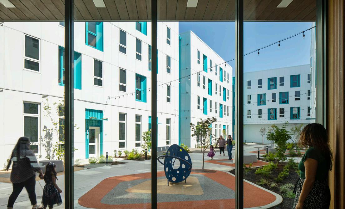 Mutual on the Boulevard est un projet d’habitations a loyer moderé située à Sacramento, conçue avec inspiration du soleil, de l’eau et du mouvement. Le plan directeur comprend divers bâtiments résidentiels maximisant la densité et les installations solaires photovoltaïques. Revêtus de panneaux de ciment et de métal, ces bâtiments proposent des appartements d’une, deux et trois chambres, dont la moitié est réservée aux résidents à très faible revenu. Les services de soutien et les espaces communs sont concentrés le long de Stockton Blvd. Le projet comprend également le Centre d’Arts et d’Éducation Familiale Mutual situé le long d’une plaine d’inondation/canal FEMA, servant également d’espace ouvert de quartier. Les contributions communautaires, recueillies lors de discussions de conception, ont aidé a definir la programmation et la conception des espaces extérieurs tout au long du site.
