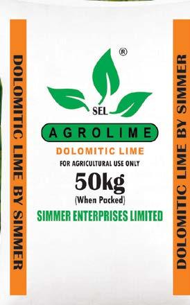 SIMMER ENTERPRISES LIMITED Manufacturers of Agriculture Lime, (Calcitic Lime & Dolomitic Lime) Calcium Carbonate, Stockfeed Lime & Grit Suppliers of Agro Inputs, Gypsum (Calcium Sulfate) & all types of fertilizers +260 974 573 758 agrolime.zambia@gmail.com +260 978 592 390 agrolime.simmer@gmail.com +260 211 286 424 www.simmerlime.com P.O. BOX 33201, STAND No.12609, KATANGA ROAD, CHINIKA INDUSTRIAL AREA, LUSAKA - 10101 ZAMBIA