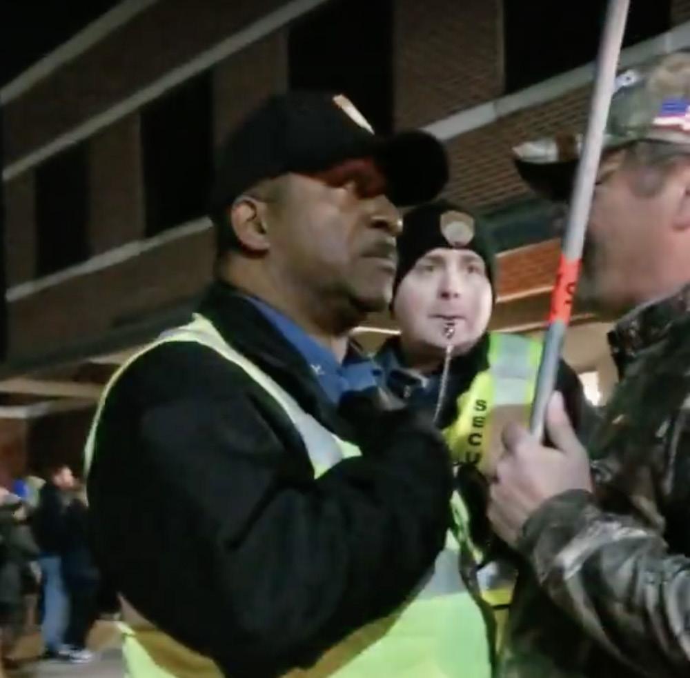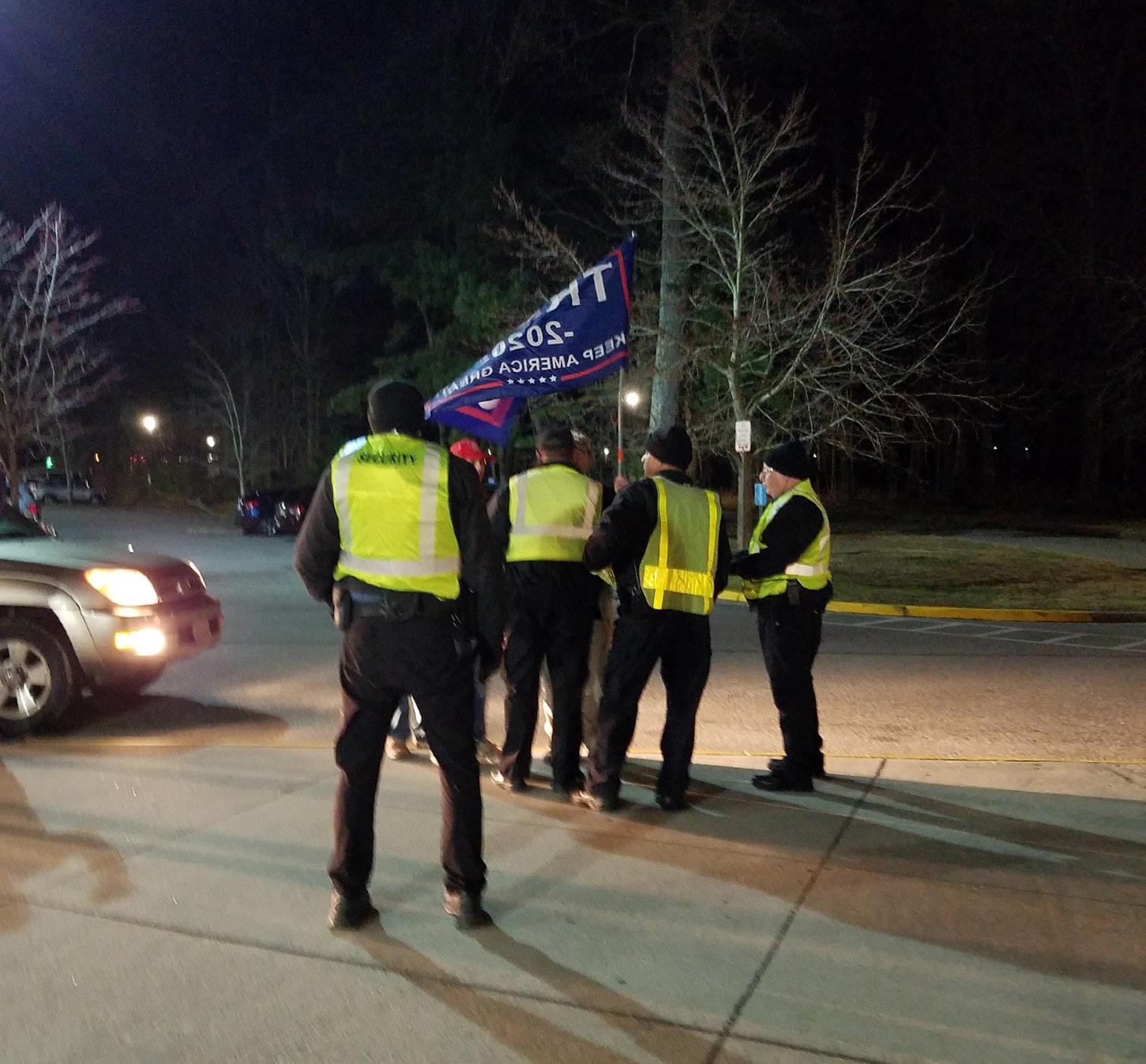 Campus Security officers approach Markus Gohring and his fellow Trump supporters, asking them to leave the campus property.