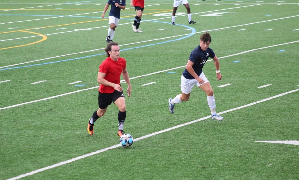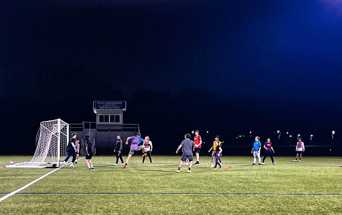 Club Soccer meets during practice on Birdsong Field.