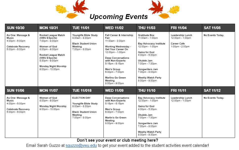 THEWEEKENDER Thursday October 27, 2022 The Marlin Chronicle marlinchronicle.vwu.eduPAGE 10
