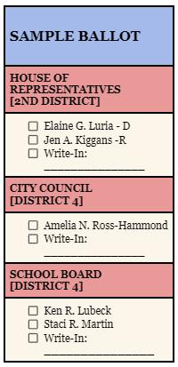 Kiggans and Luria will be joined on the ballot by those running for City Council and School Board positions.