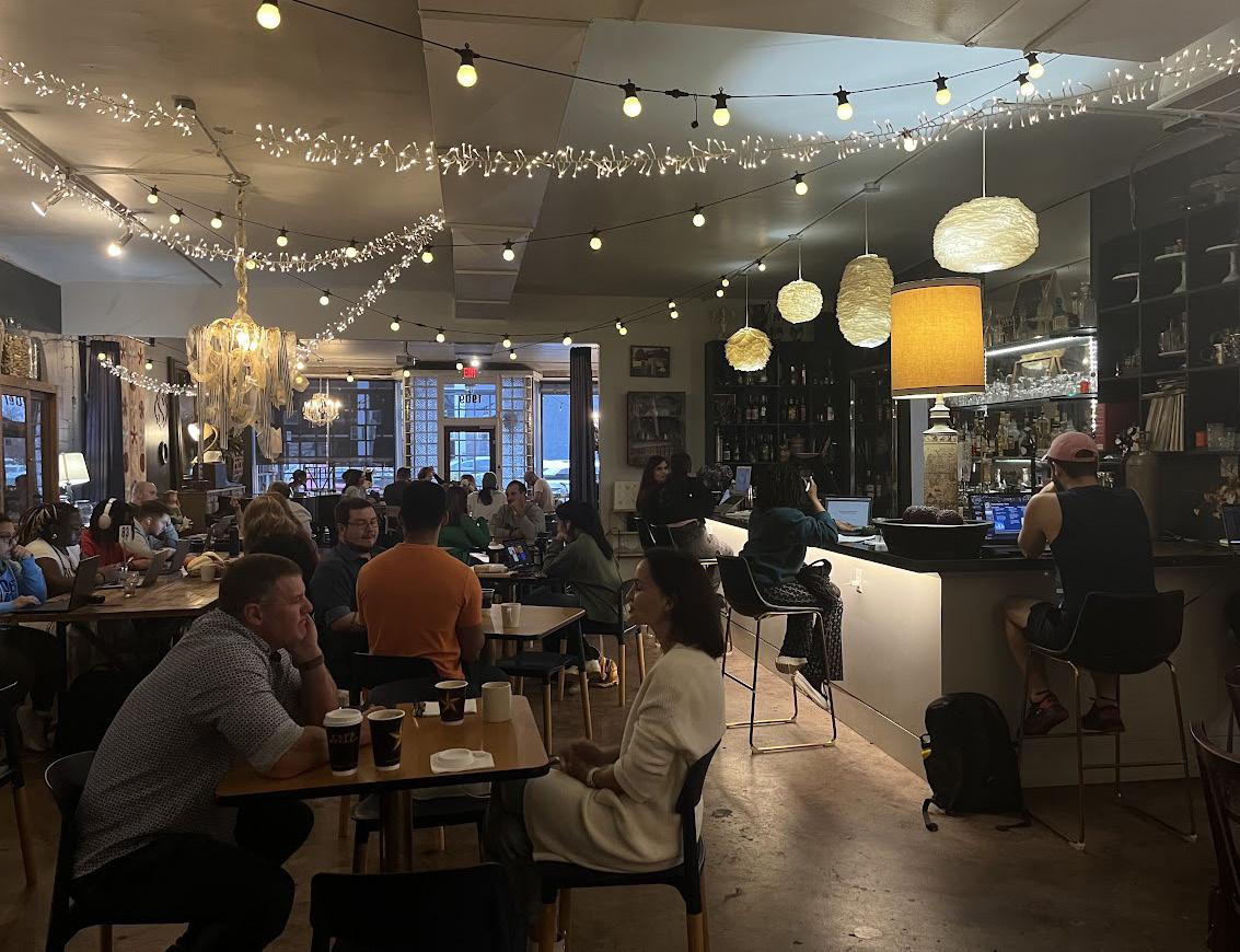 Cafe Stella is an eclectic hubbub with a homelike ambience. Open from 6:30 a.m. Monday through Friday, 8 a.m. Saturday and 9 a.m. Sunday until 10 p.m., it functions as both a coffee roaster and bistro. Behind the counter is a ten foot chalkboard menu, which covers affordable, popular and unique flavor profiles. A full day of studying could easily be fueled by breakfast shakshuka, Korean beef tacos and a slice of cake with a latte. They appease a plethora of palates with coffee customization, with over a dozen different flavorings and milk substitutes. As they are open late, they serve drinks and