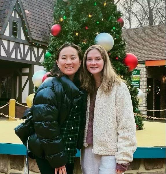 Abby Moyers|Courtesy Juniors Abby Moyers and Grace McGhee pose in front of the iconic Busch Gardens Christmas tree.