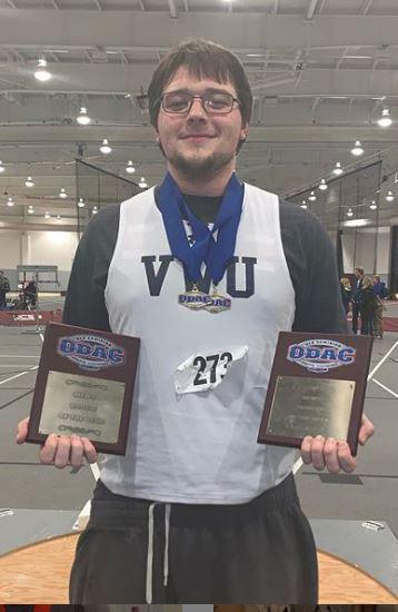 BY MEGAN SHERMAN mrsherman@vwu.edu @vwumenxctf|Instagram Coby Cockrell winning ODAC Freshman of the Year and ODAC Field Athlete of the Year.