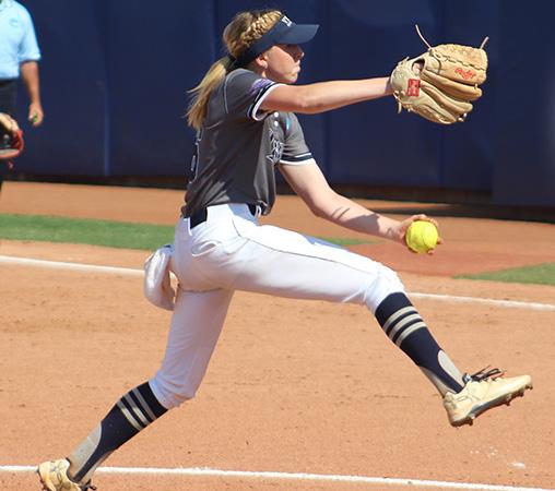 Sports Information|Courtesy Hull pitching at the mound. She has 760 career strikeouts.